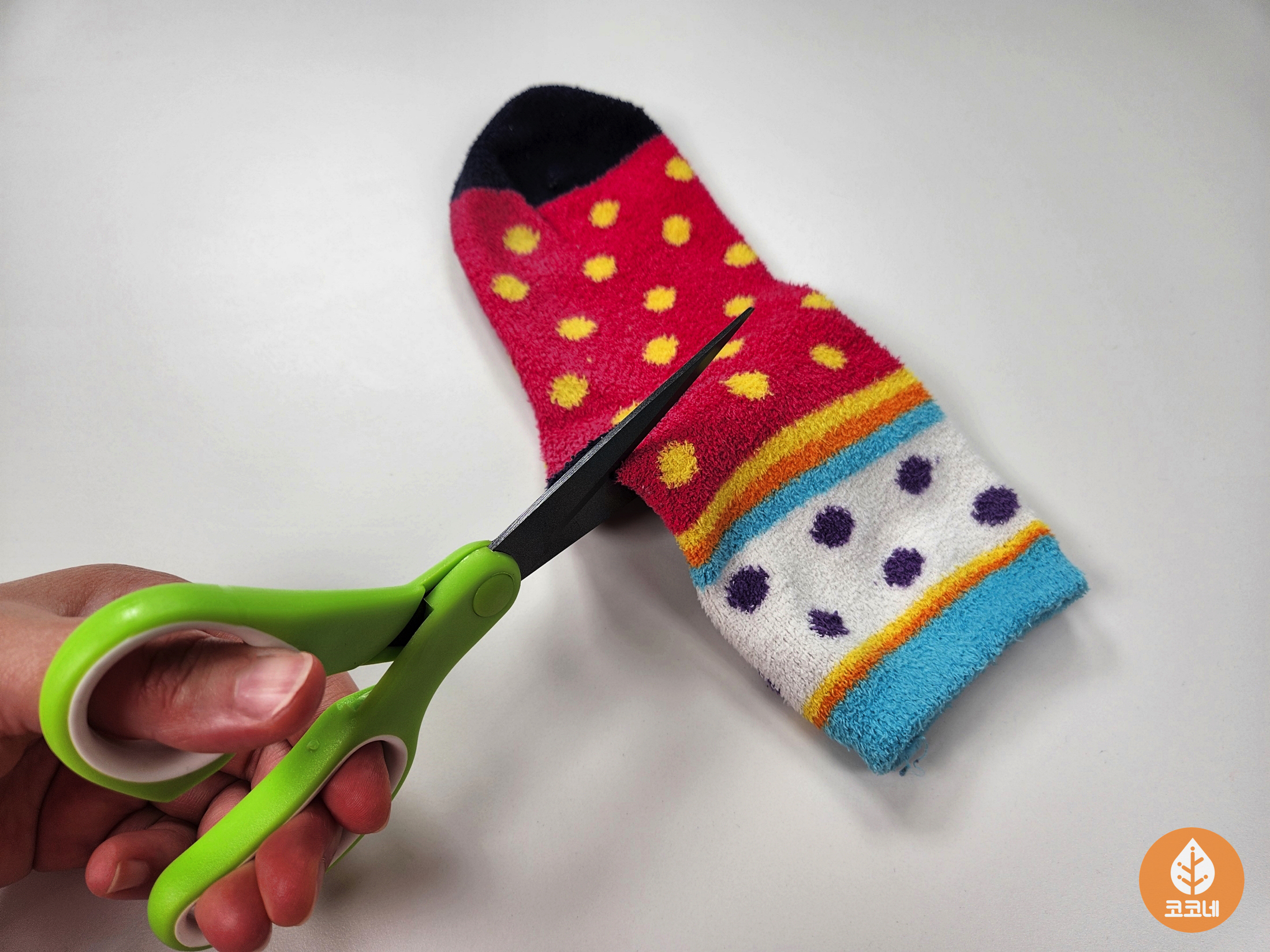 수면양말을 가위로 잘라보세요.