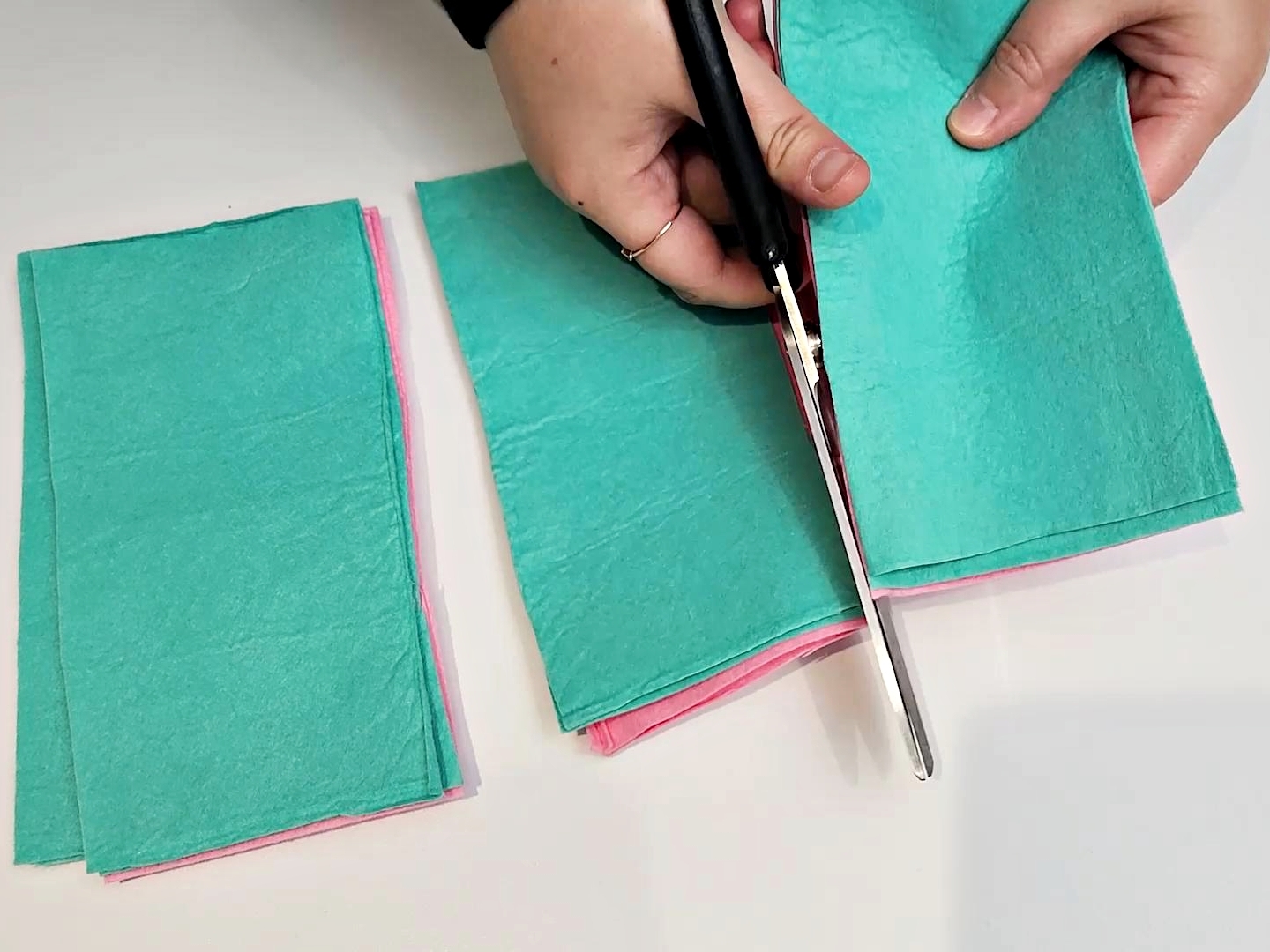 일단 부직포행주를 손에 잡기 좋은 사이즈로 잘라주세요.