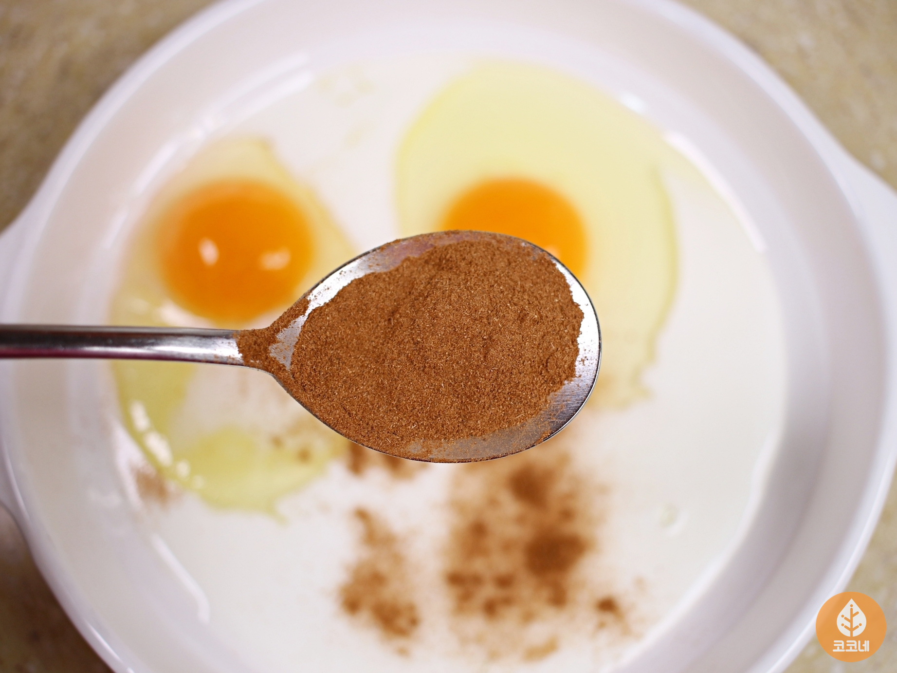 계피향이 퍼지는 계란물을 체에 걸러서