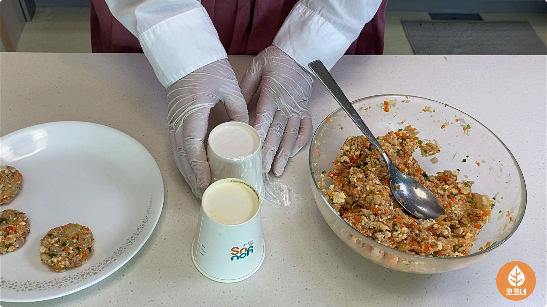 동그랑땡을 만들 때 종이컵 2개를 꺼내면