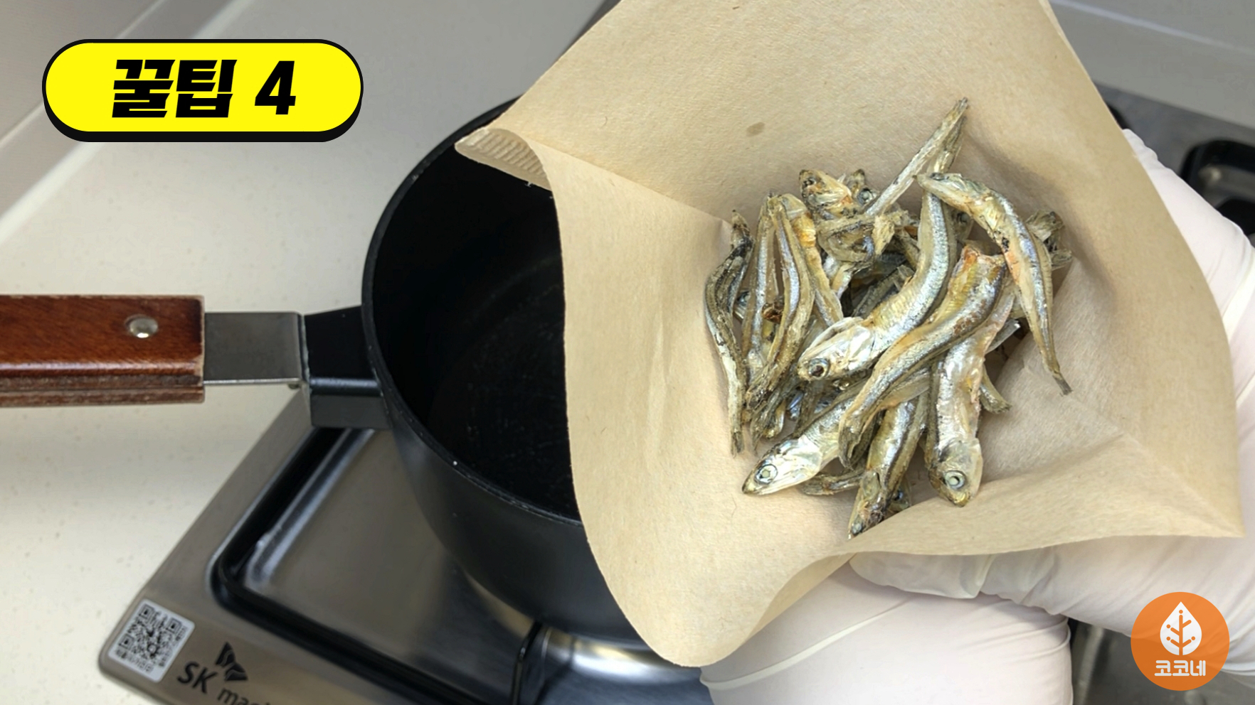 끓는물에 넣으면 멸치맛이 제대로 우러나요.