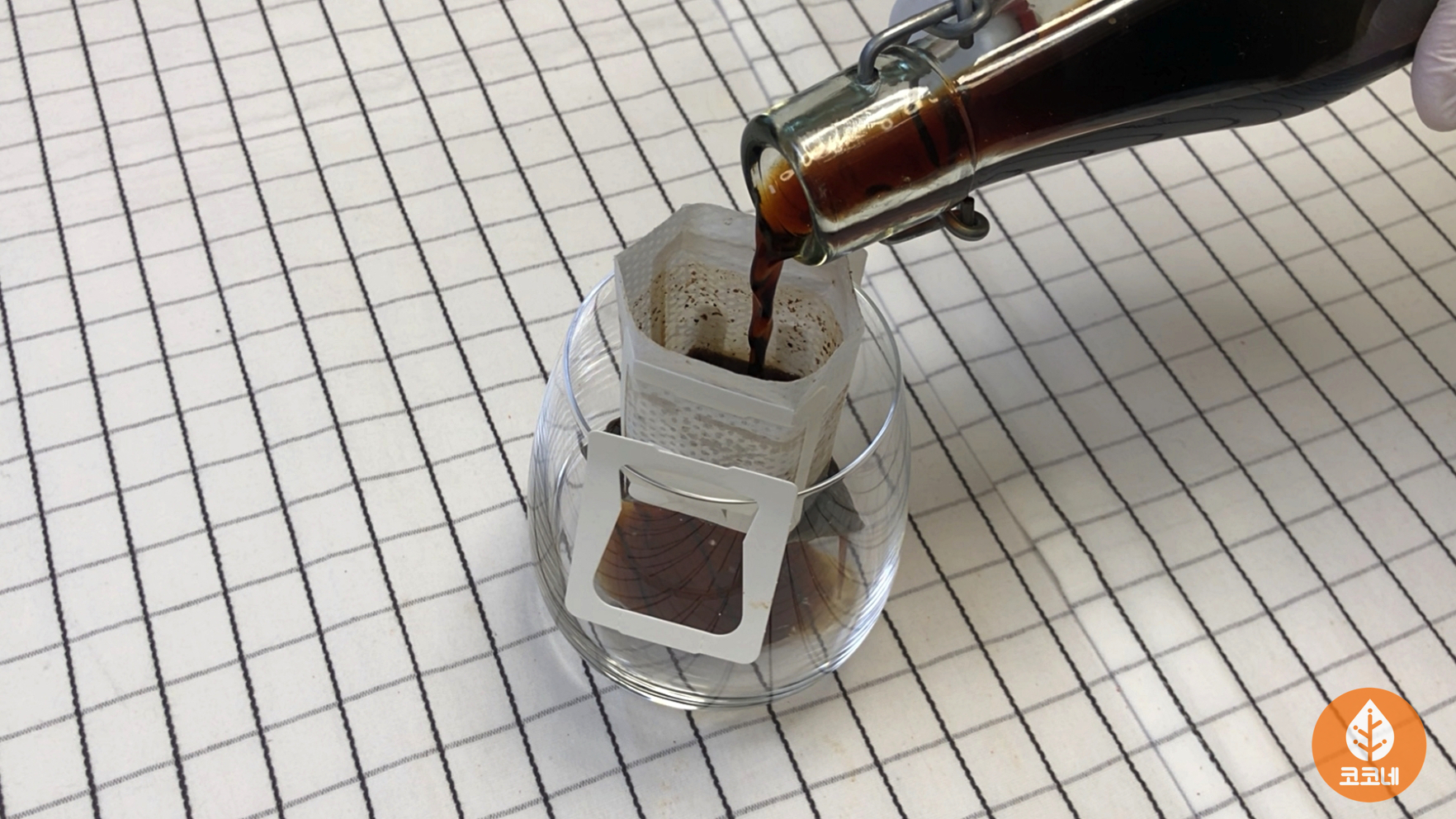 국간장이 커피필터를 지나면서 불순물을 거르고