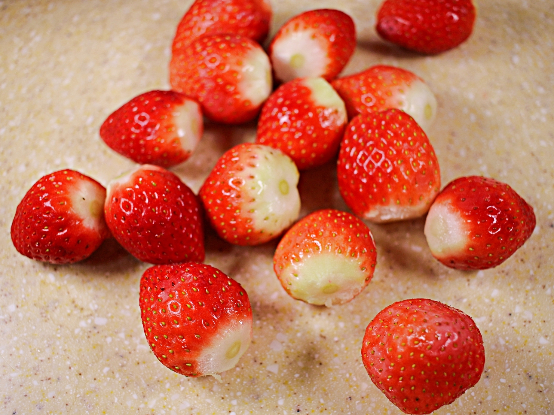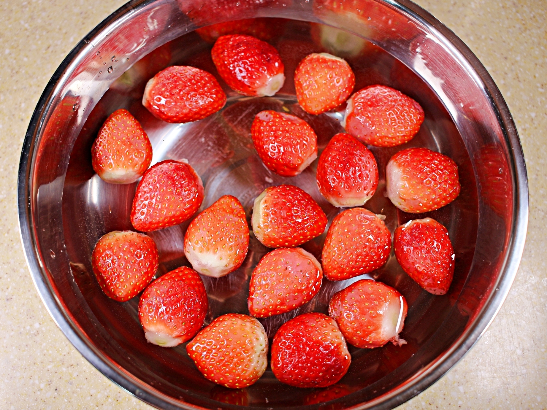 찬물에 1분간 담가놓았던 딸기를