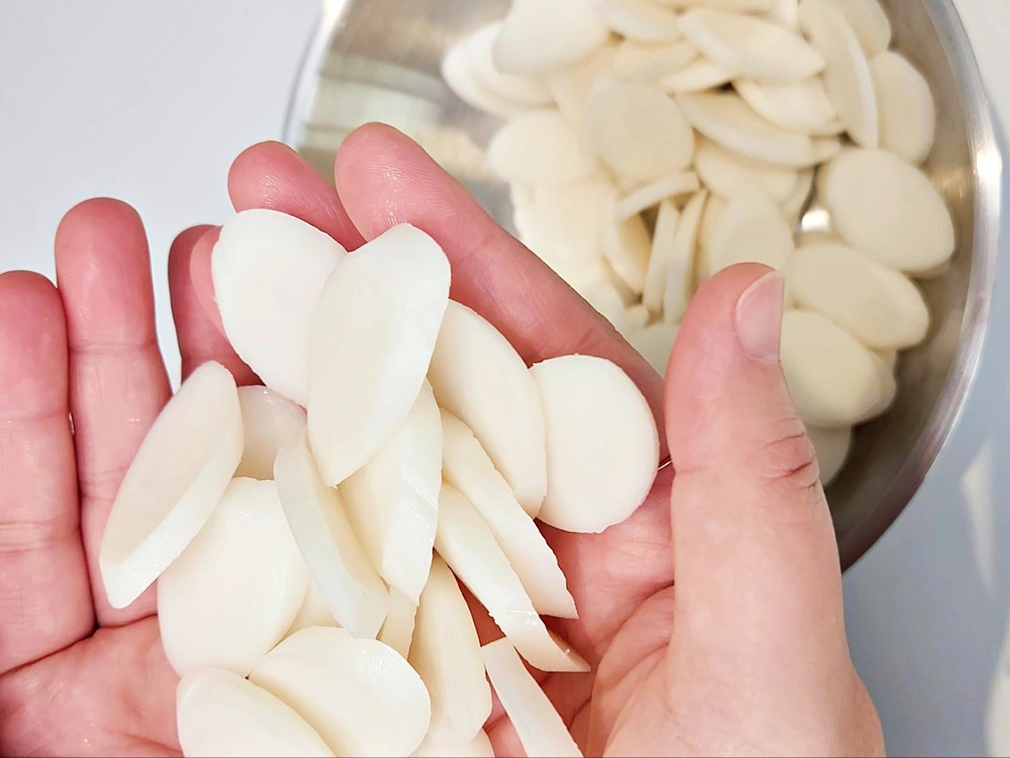 미지근한 물에 떡국떡을 담가