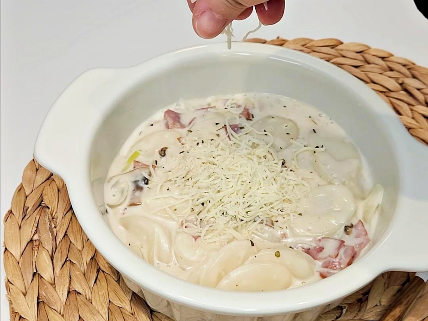 여기에 파마산 치즈가루나 눈꽃 치즈를 올려주면