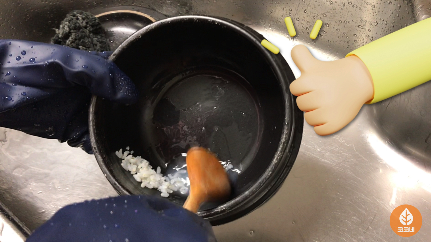 뚝배기를 세척하는 방법이에요.