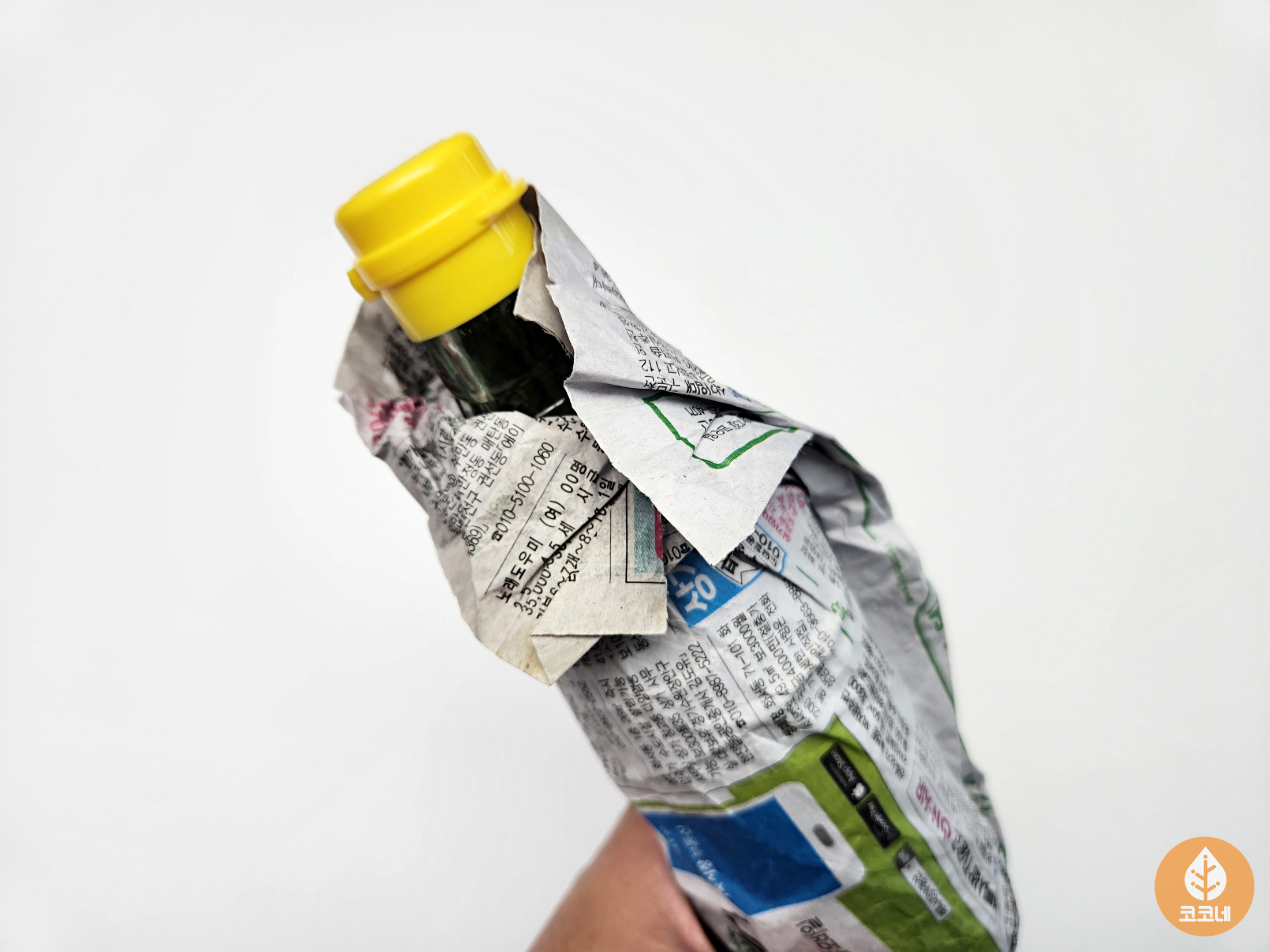 고무줄로 고정시키면 기름병 안심커버 완성!