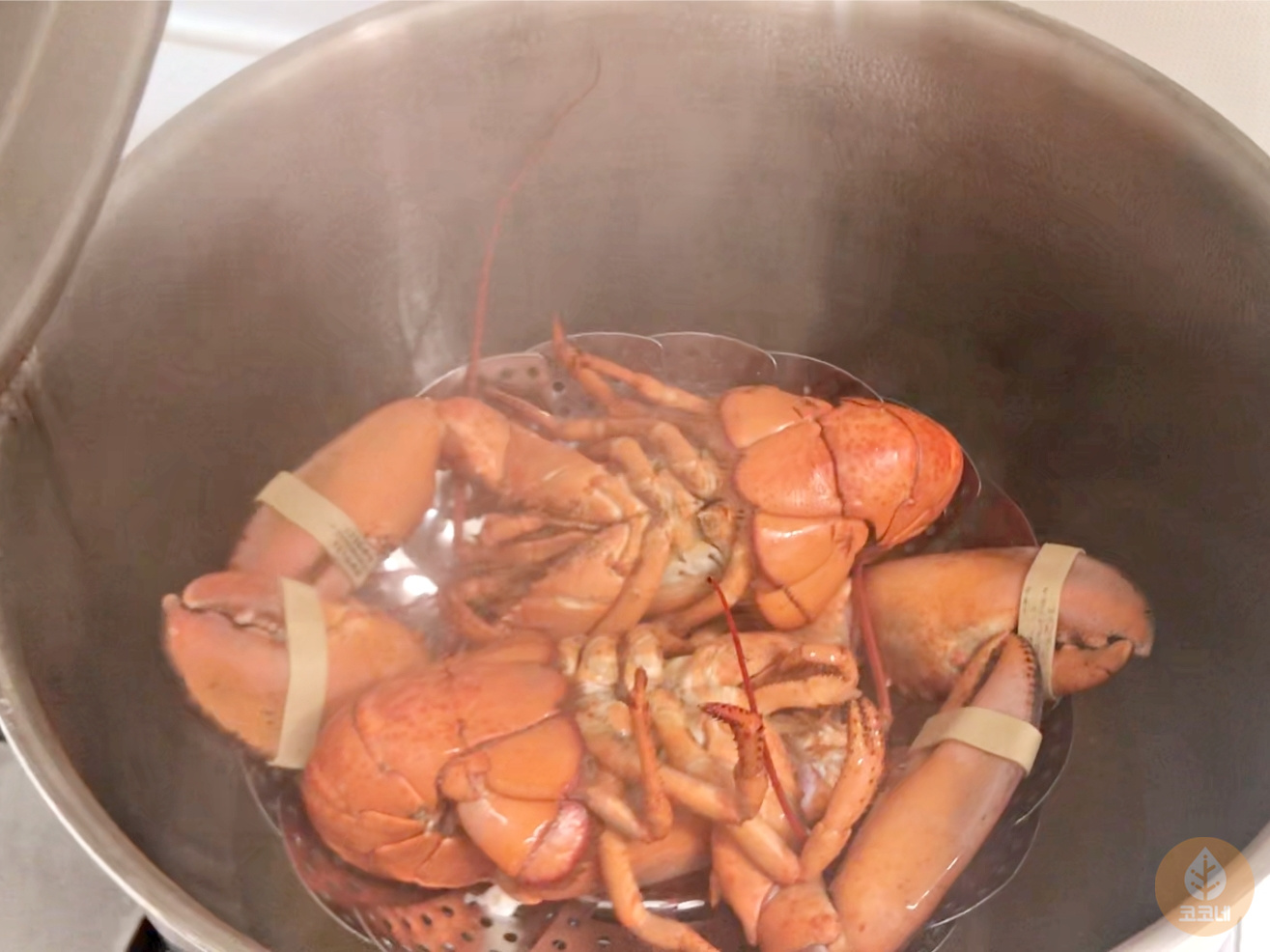스팀효과로 랍스터 살이 부드럽게 쪄 지면서