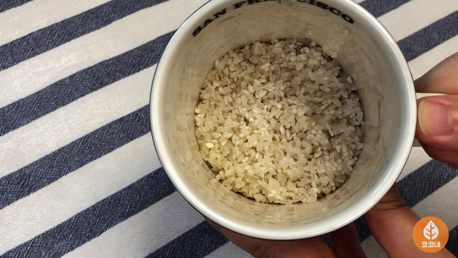 머그컵에 씻은쌀을 반정도 채우고