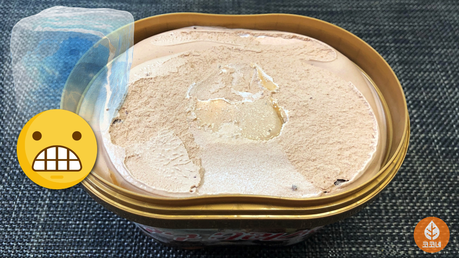 냉동실에서 꺼낸 아이스크림이 꽁꽁 얼어서