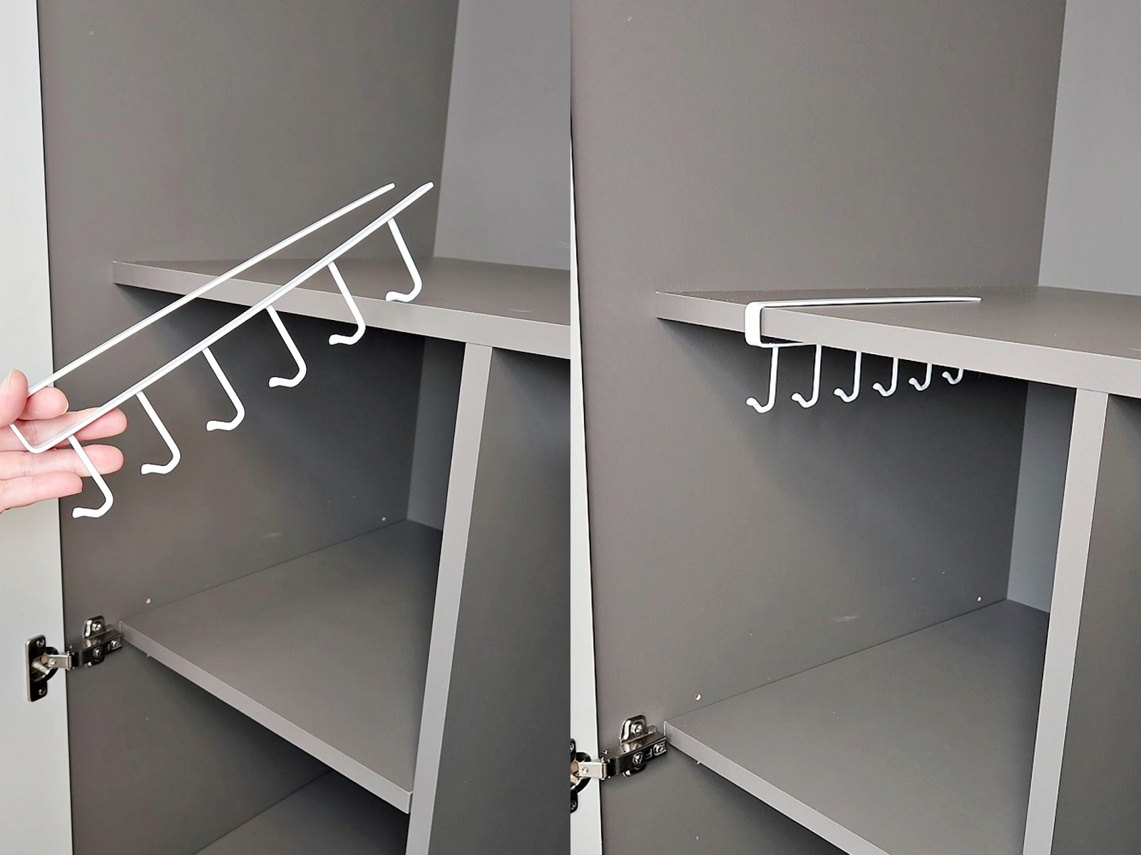 옷장이나 행거 선반에 끼우기만 하면 끝이에요.