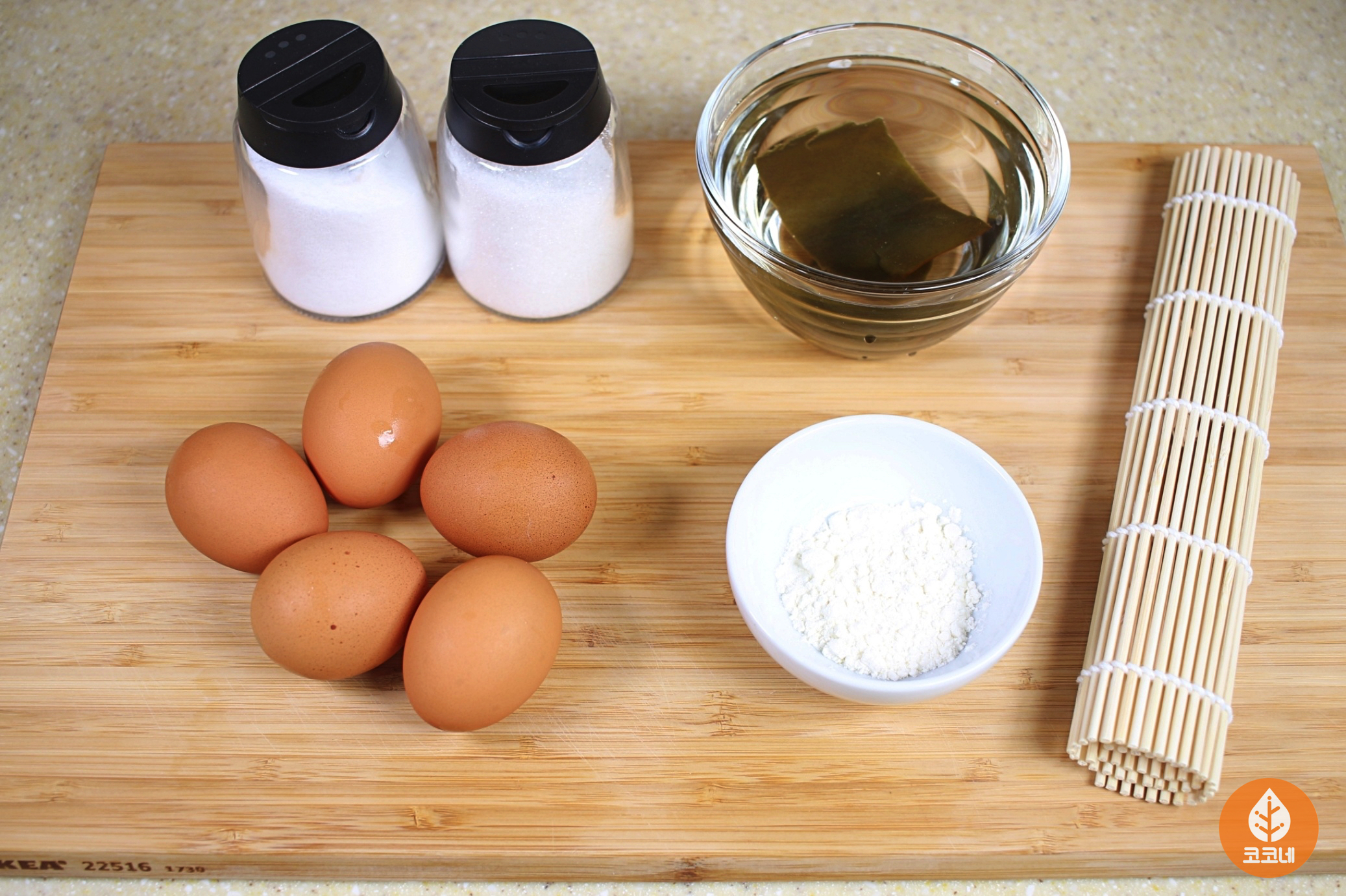 계란, 다시마물, 부침가루, 소금, 설탕, 김발.