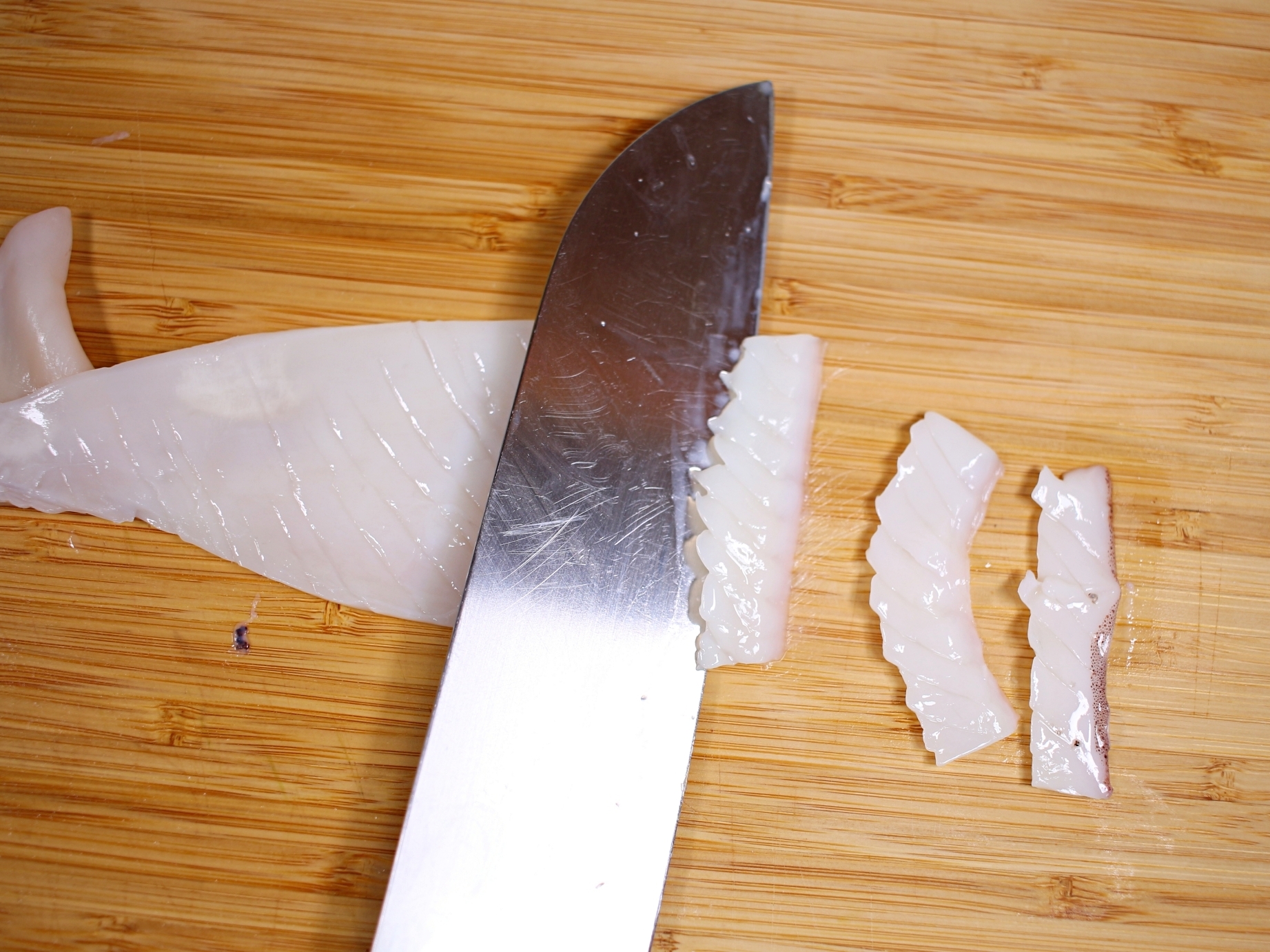 오징어는 깨끗하게 씻어서 껍질을 벗겨주세요.