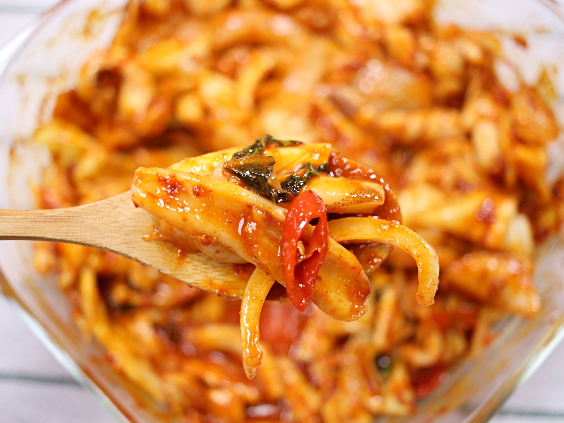 매콤칼칼한 양념이 오징어에 가득 배서 입맛을 살리고요.