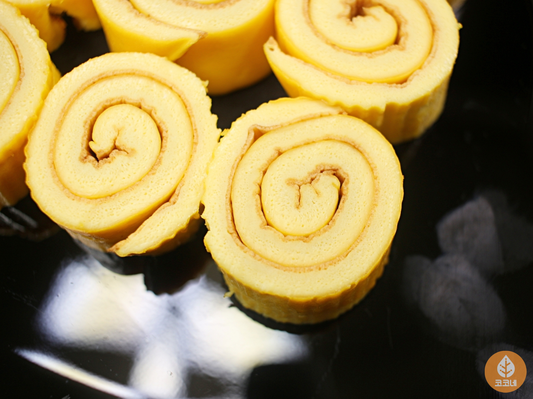 눈과 입 사로잡는 롤케이크계란말이 완성이에요.