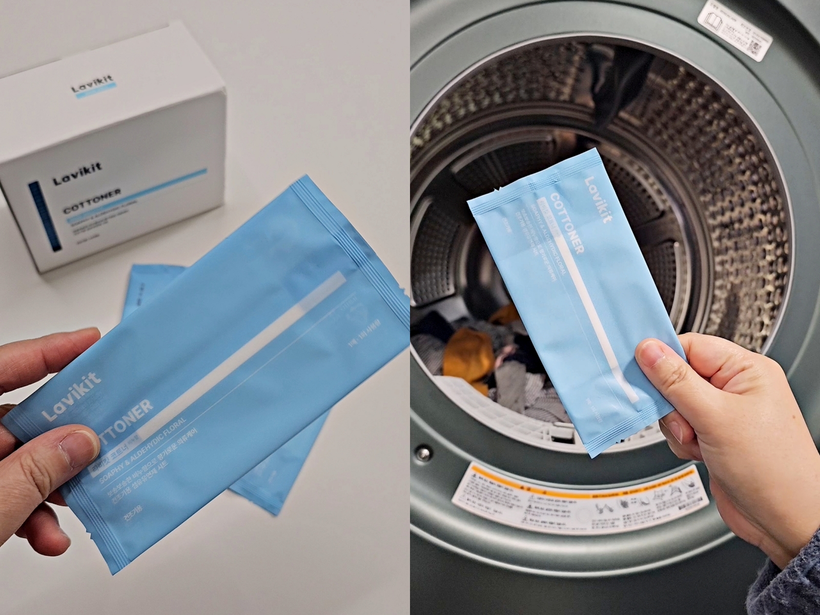 건조기에 빨래랑 같이 넣고 돌리기만 하면 끝!