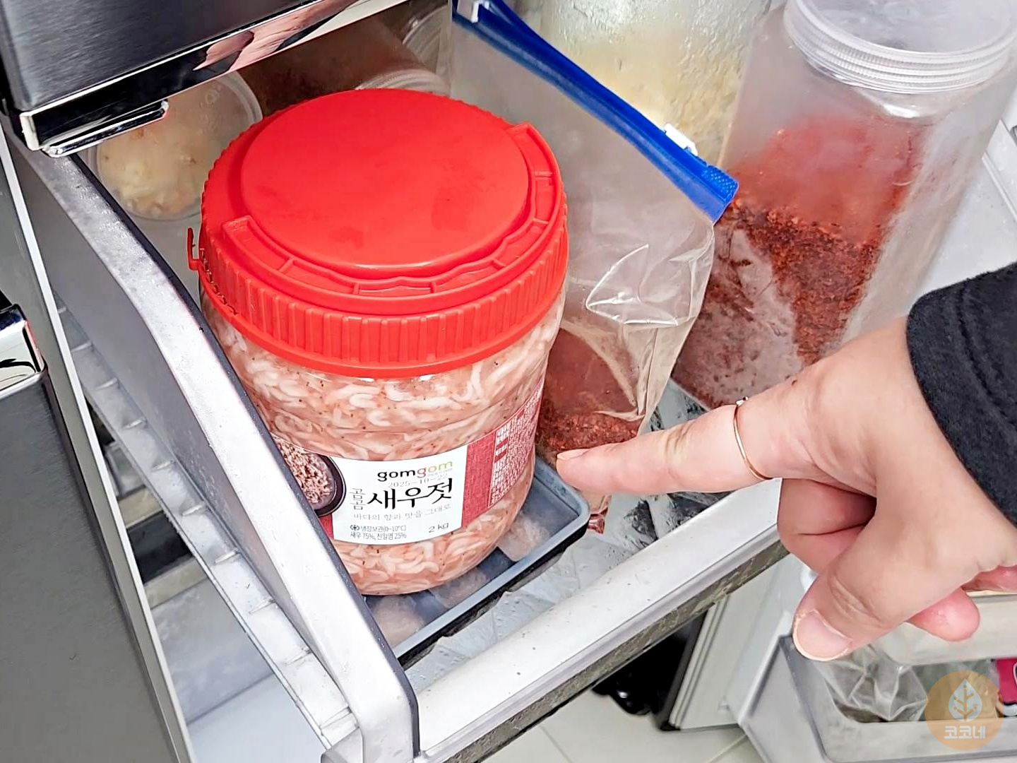 새우젓을 용기에 담긴 그대로 보관하는 거예요.