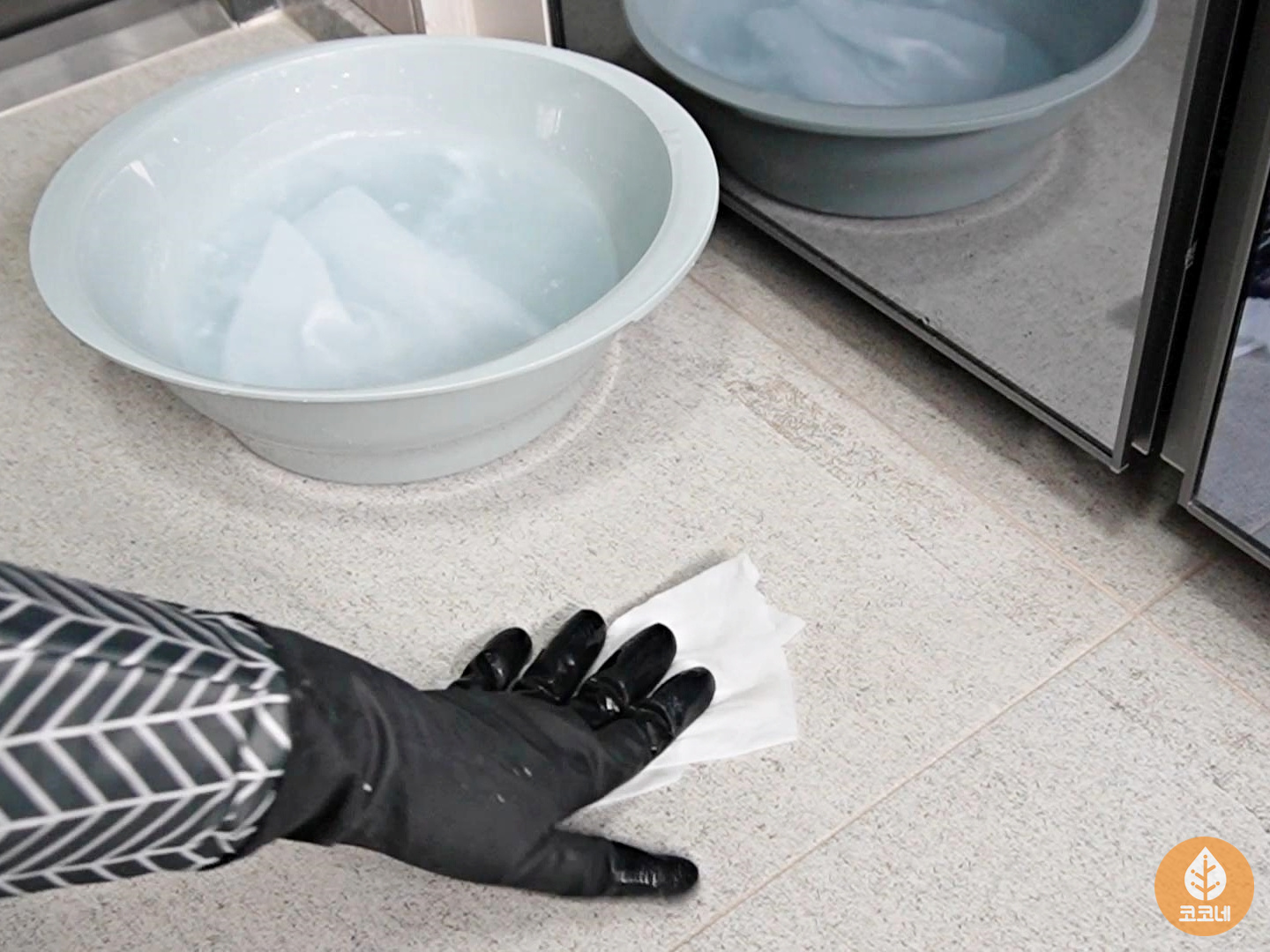 대야에 물을 1리터 부어주시고요.