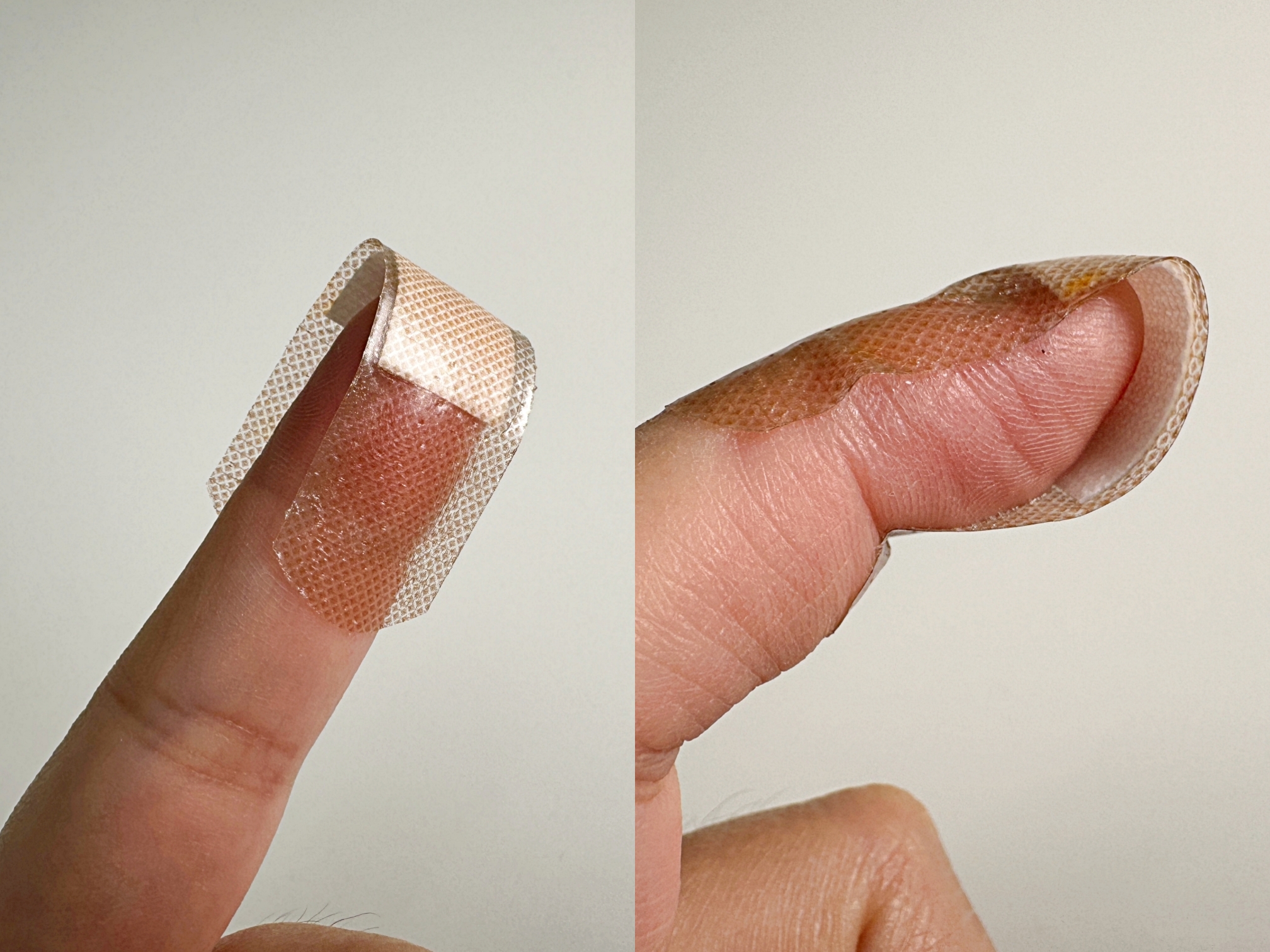 통으로 붙였을 때는 손가락을 완전히 감싸지 않아서