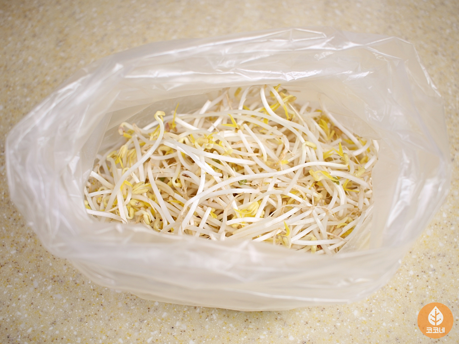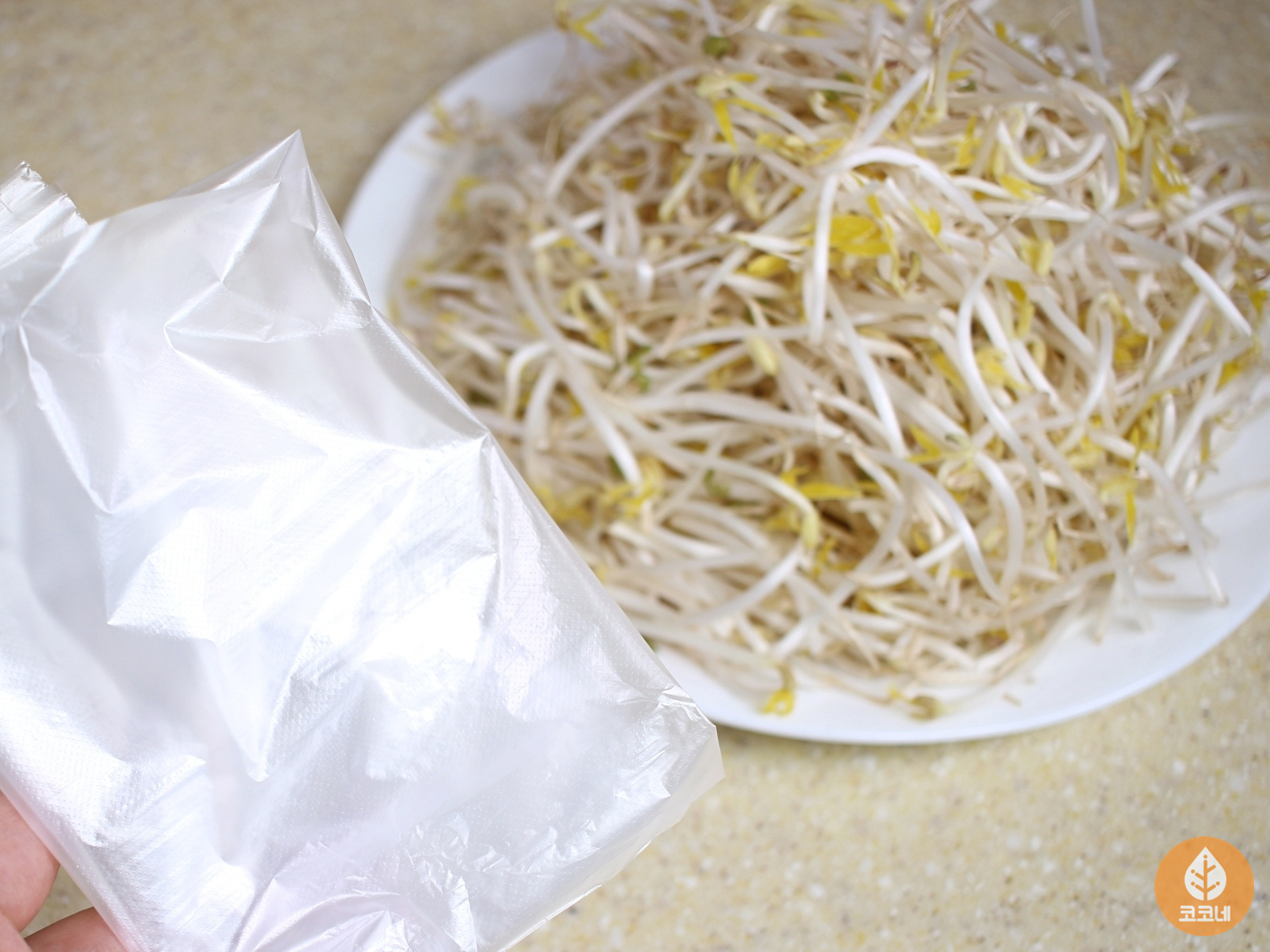 일회용 비닐에 숙주나물을 담고