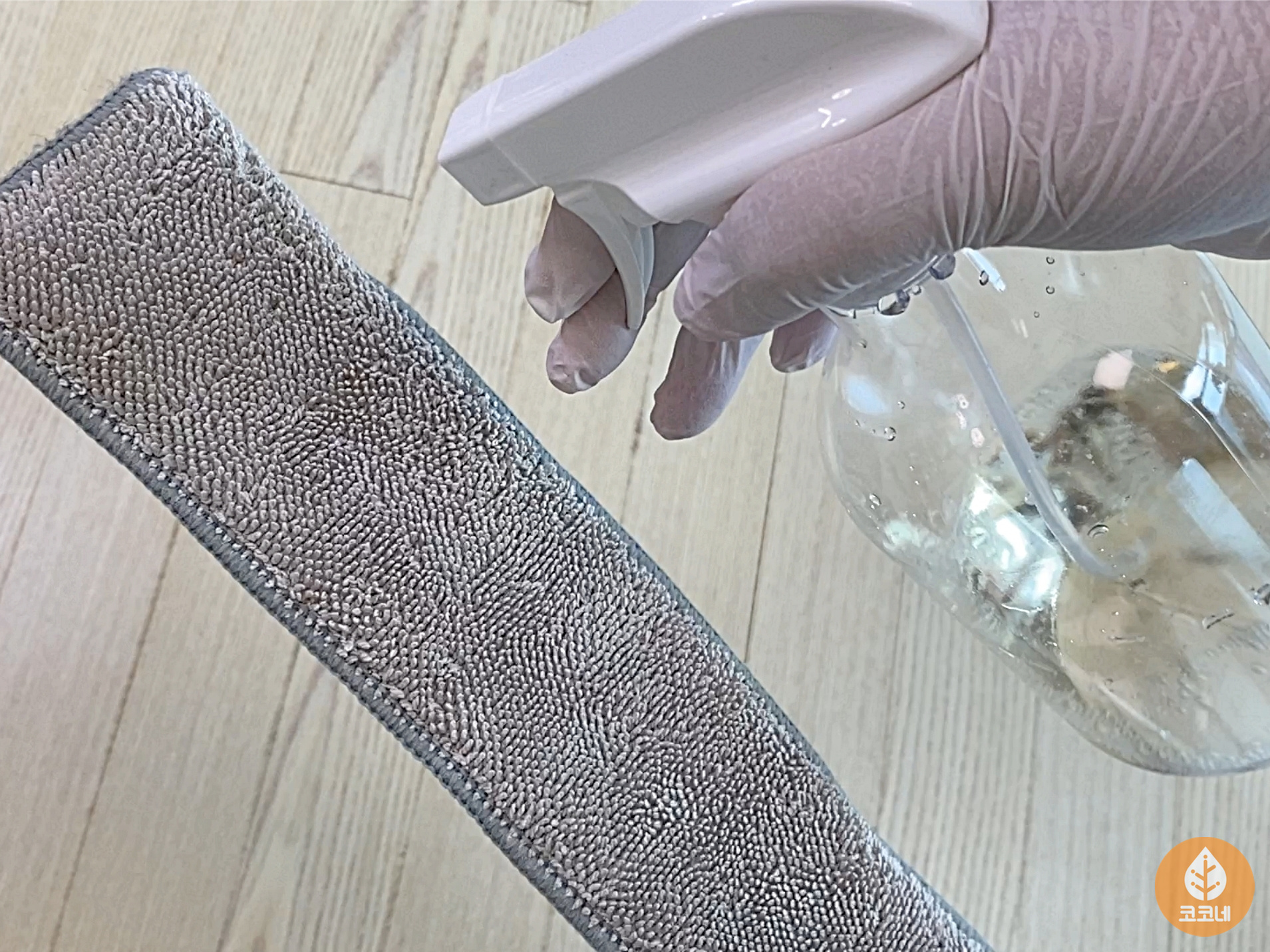 걸레에 식초수를 뿌려서 닦아주시면 돼요.
