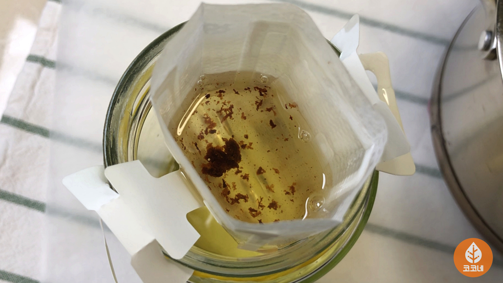 커피필터로 걸러서 불순물을 제거해주시고요.
