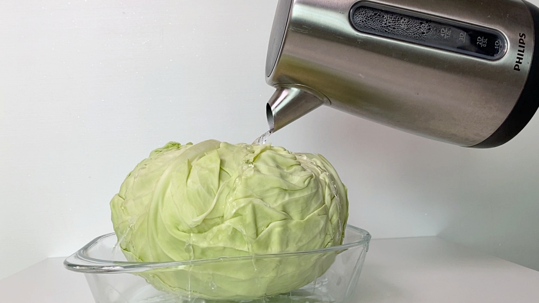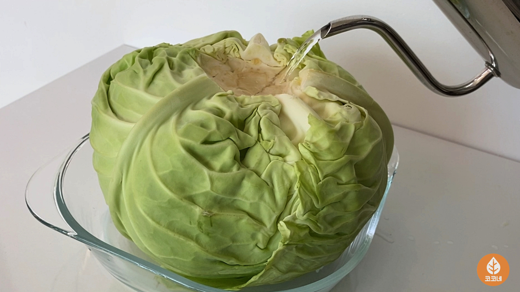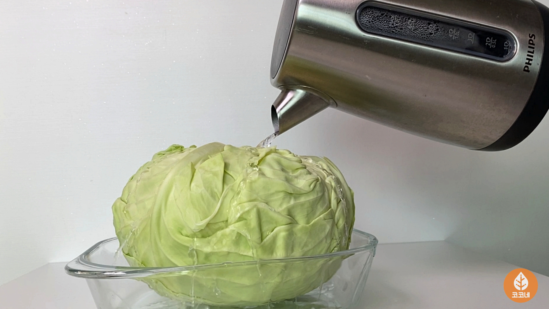 양배추에 뜨거운물을 부으면