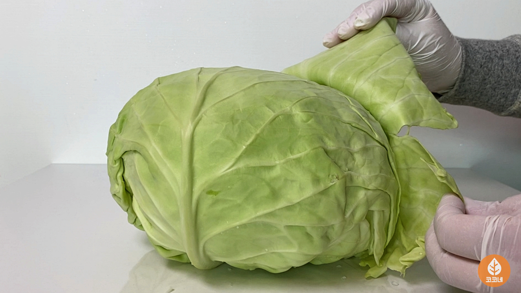 그래서 양배추잎을 한 장씩 떼어내려고 하는데요.