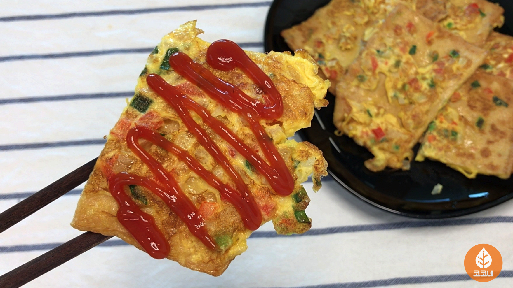 사각어묵, 밀가루, 달걀, 쪽파, 양파, 파프리카.