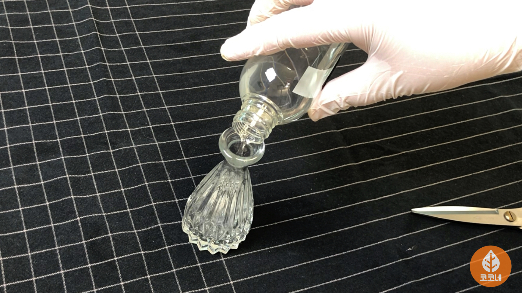 용기에 실리카겔 봉지 속 알갱이를 담고