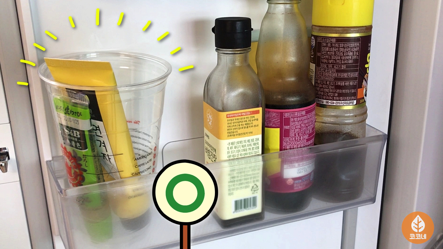 냉장고 문쪽에 보관하는 튜브타입 양념들도