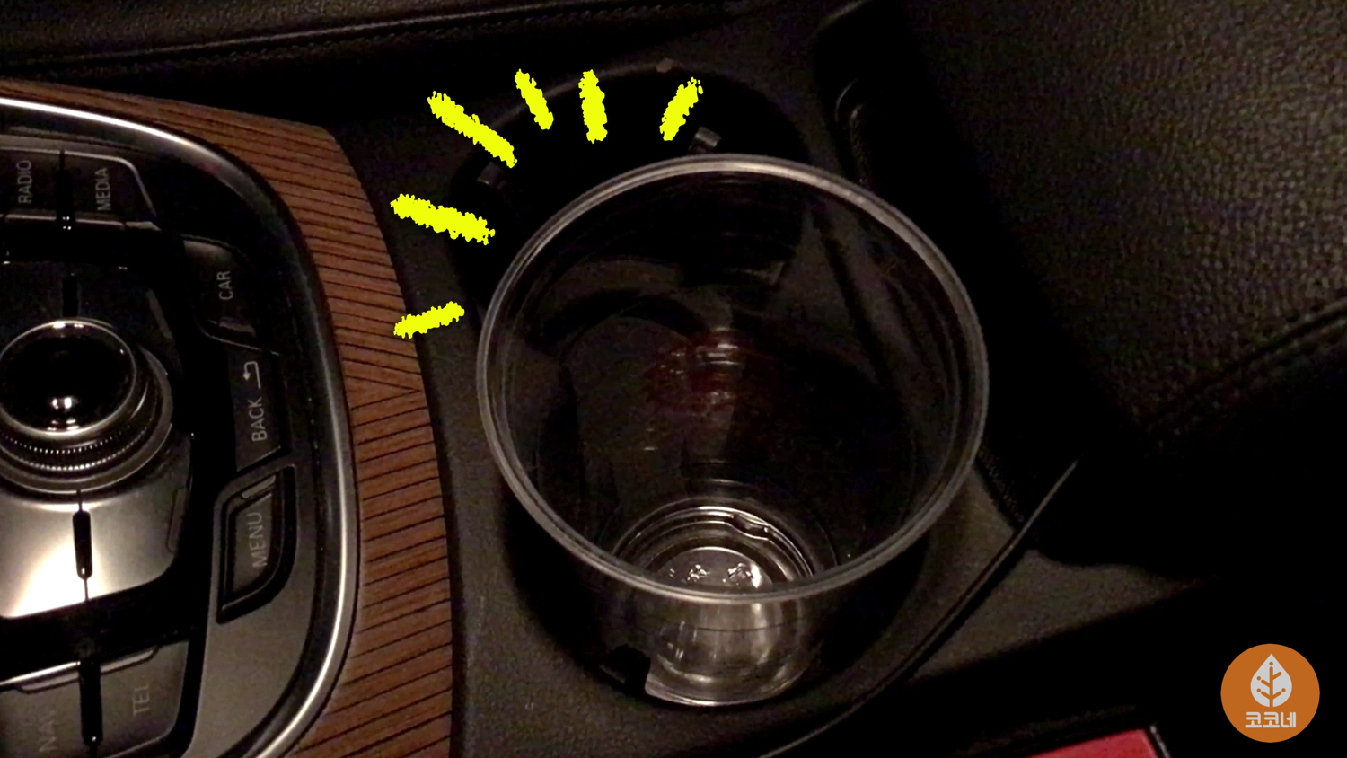 일회용 아이스컵을 컵홀더에 끼워놓고