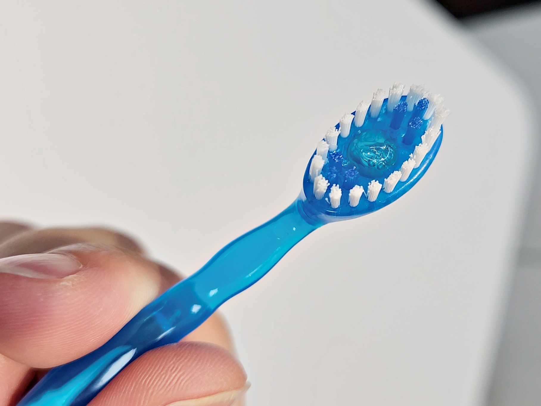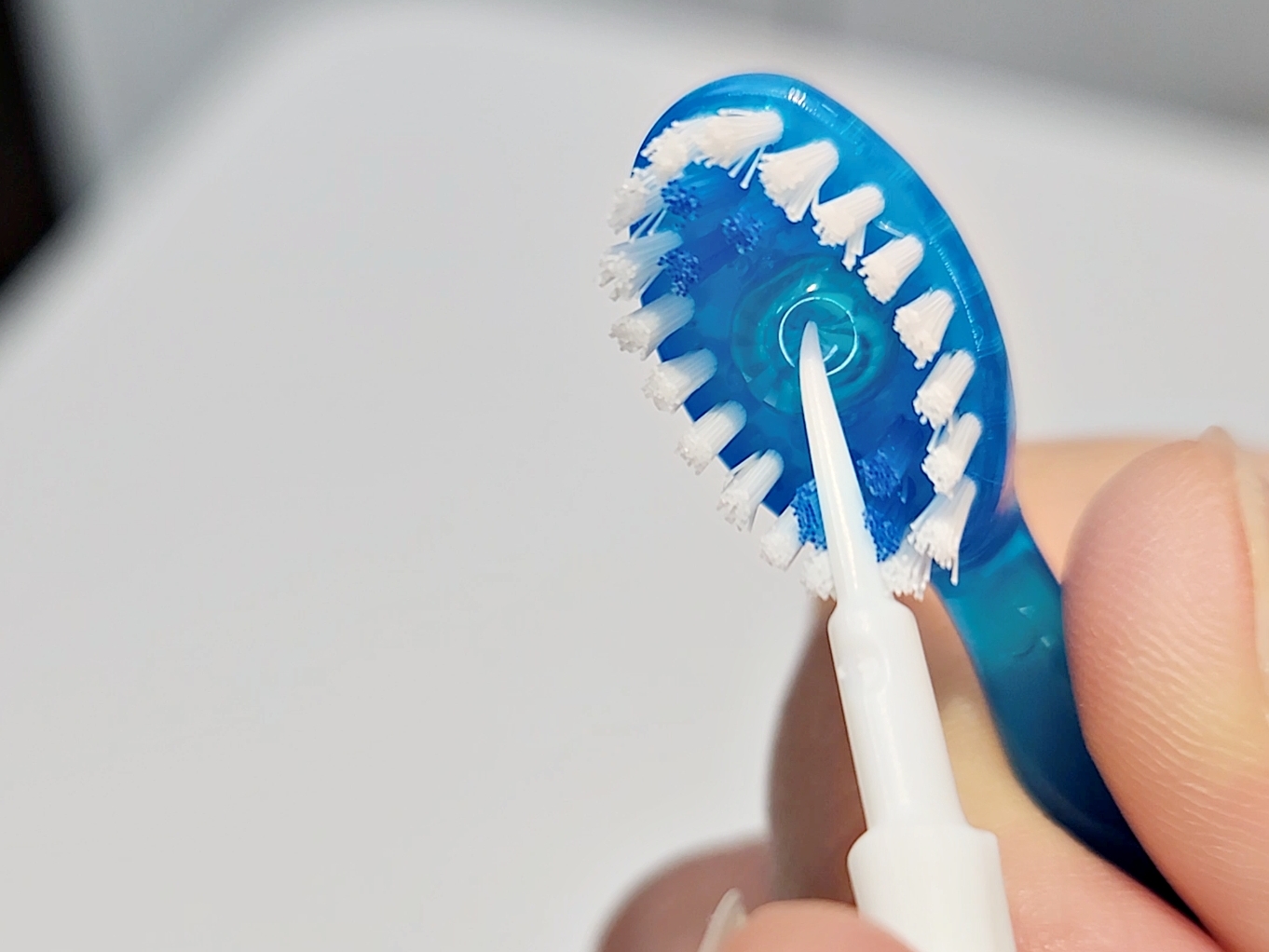 브러시 중앙에 민트 캡슐이 있고
