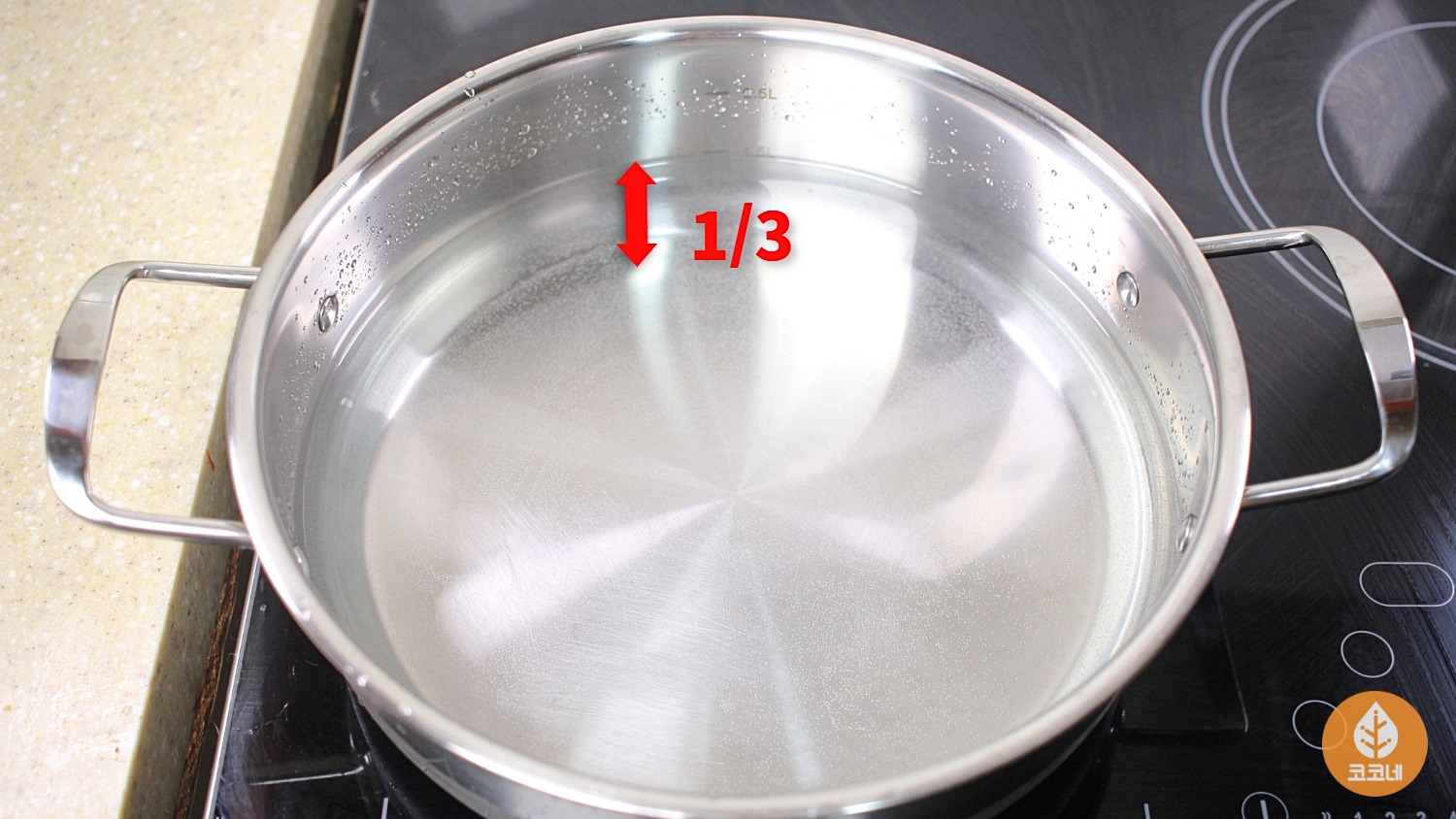 냄비 바닥에 깨끗한 행주를 깔아주세요.