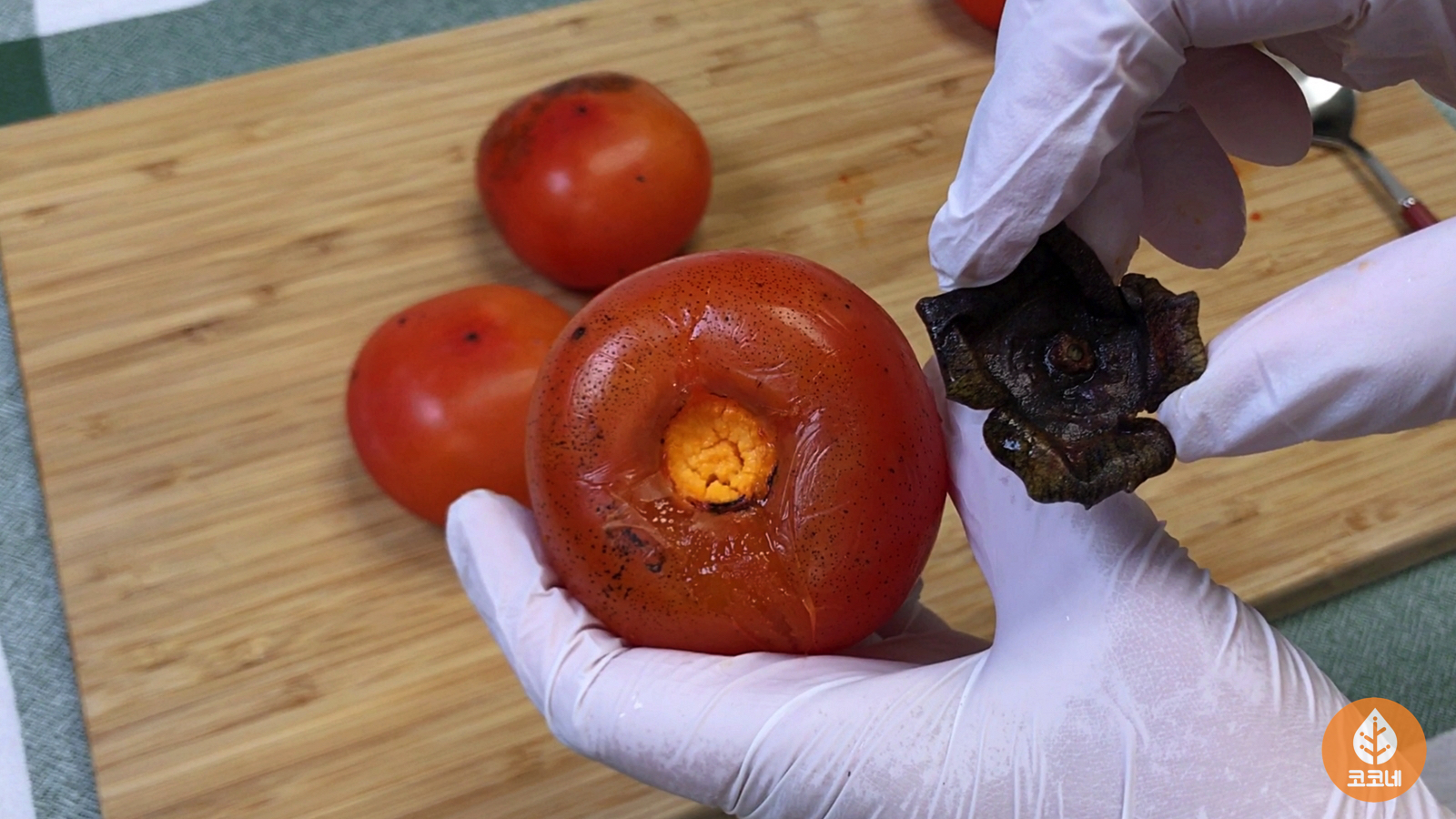 홍시 꼭지를 제거할 거예요.