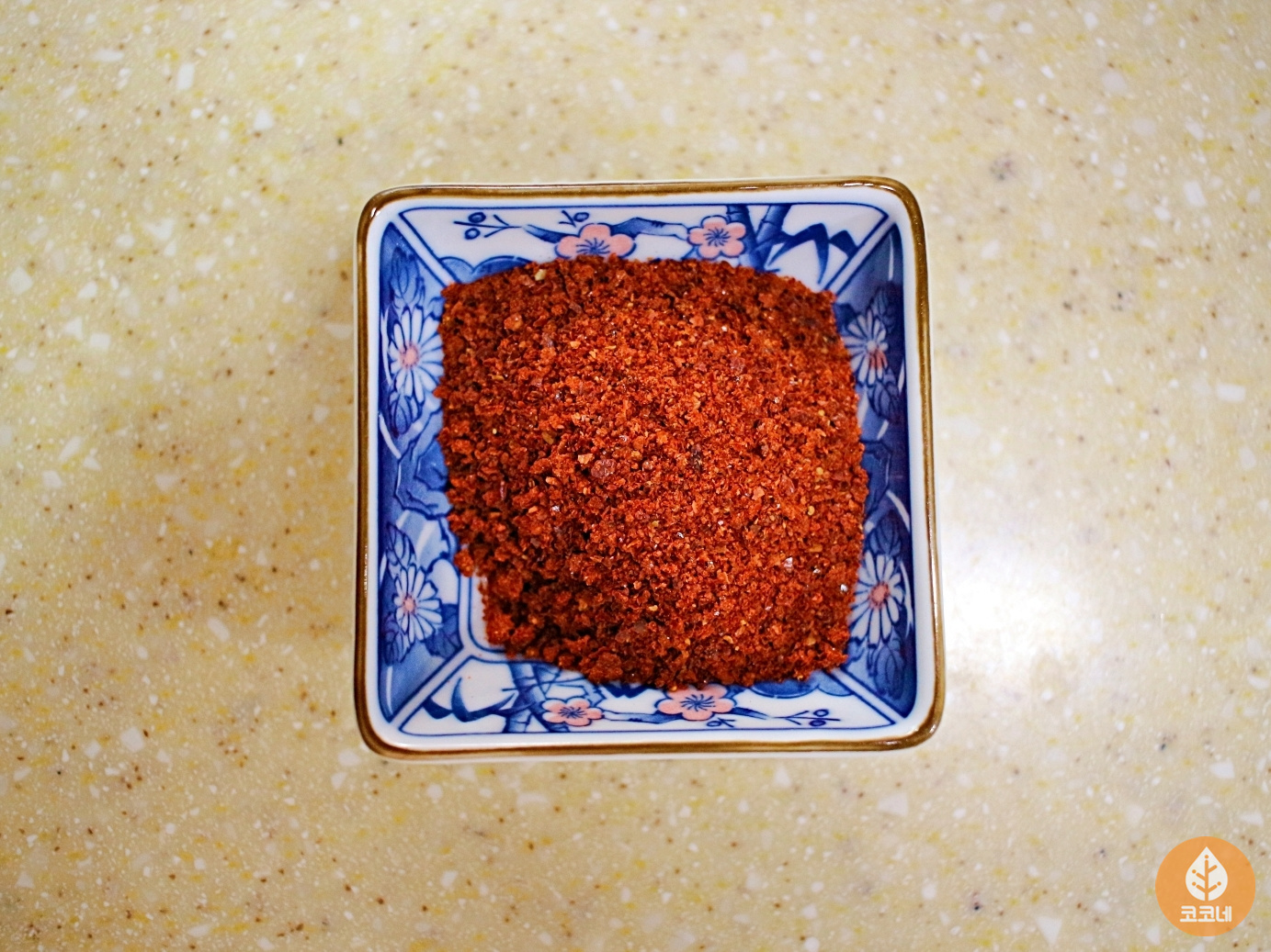 고춧가루가 뭉치지 않게 골고루 뒤적여 주시고요.