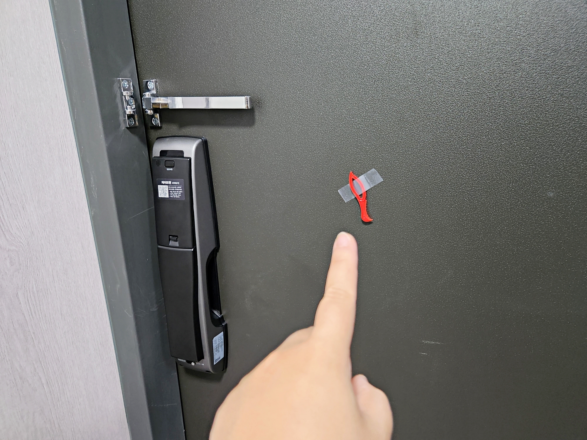바로 현관에 일회용 실링칼을 딱! 붙여두는 거예요.