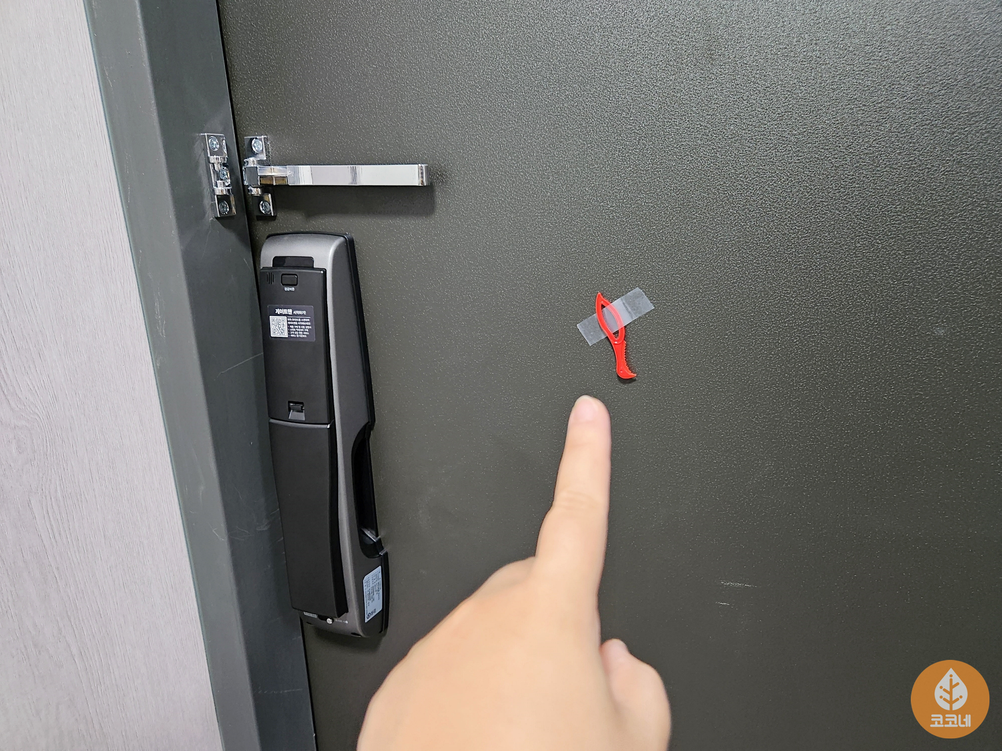 현관문에 테이프로 붙여놓거나