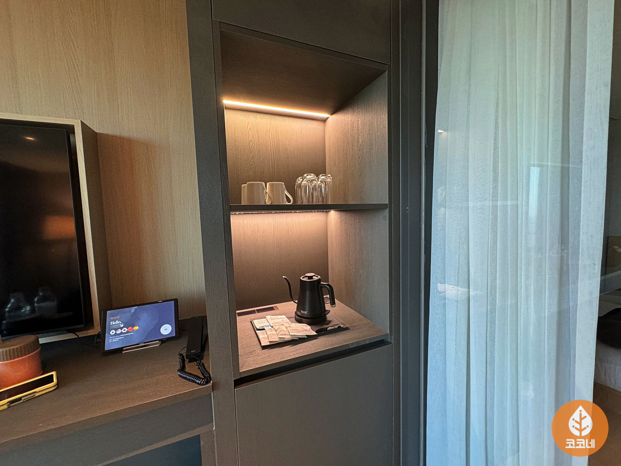 미취사 객실로 인덕션 자리는 마감재로 덮여있고요.