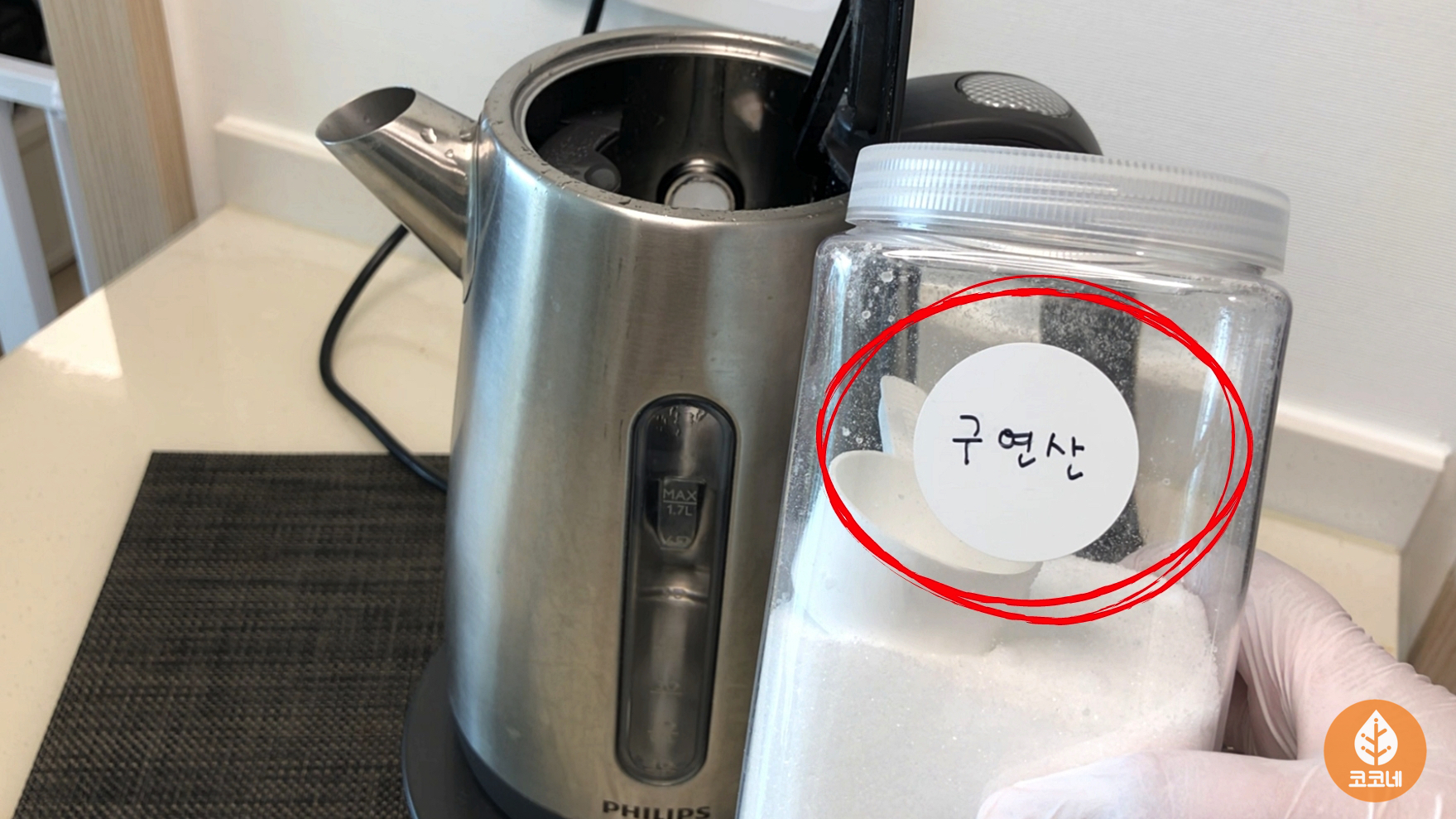 구연산을 한큰술 넉넉하게 넣어주세요.