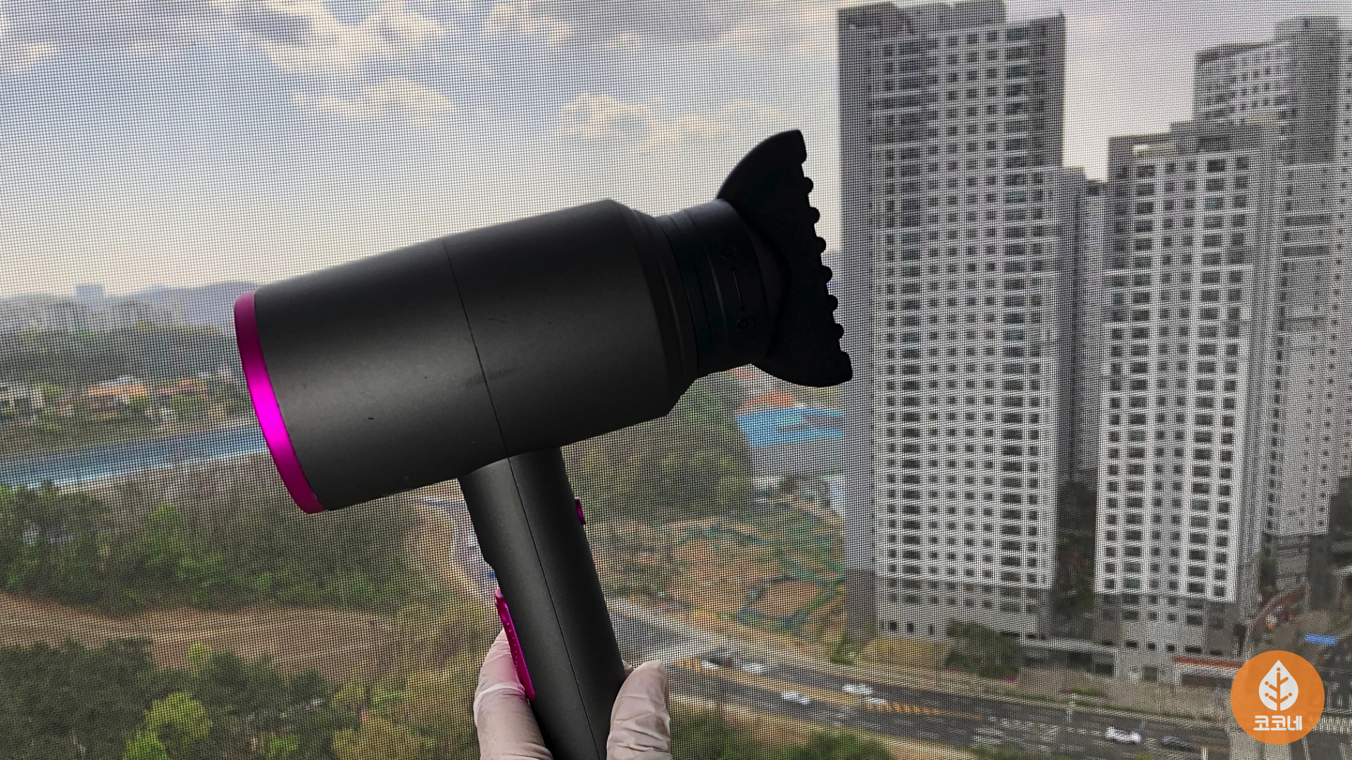 방충망에 드라이기 바람을 쐬면