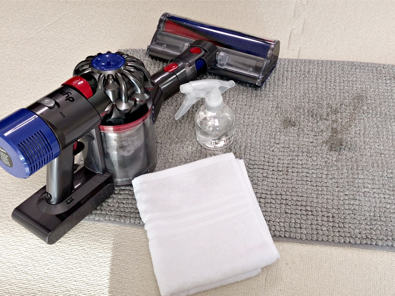 이때를 틈타 청소기로 얼룩을 빨아들이면