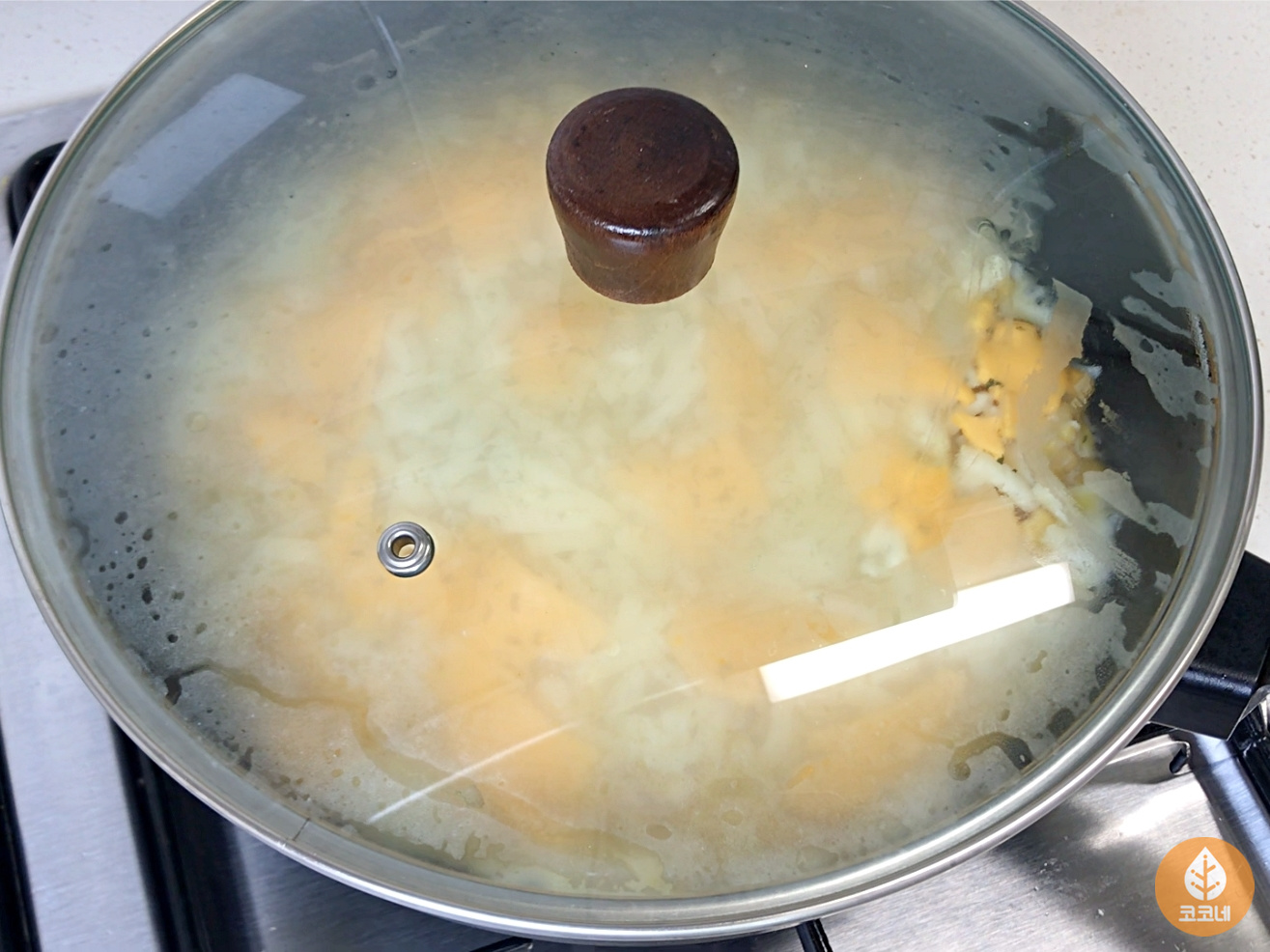약불에서 뚜껑 닫고