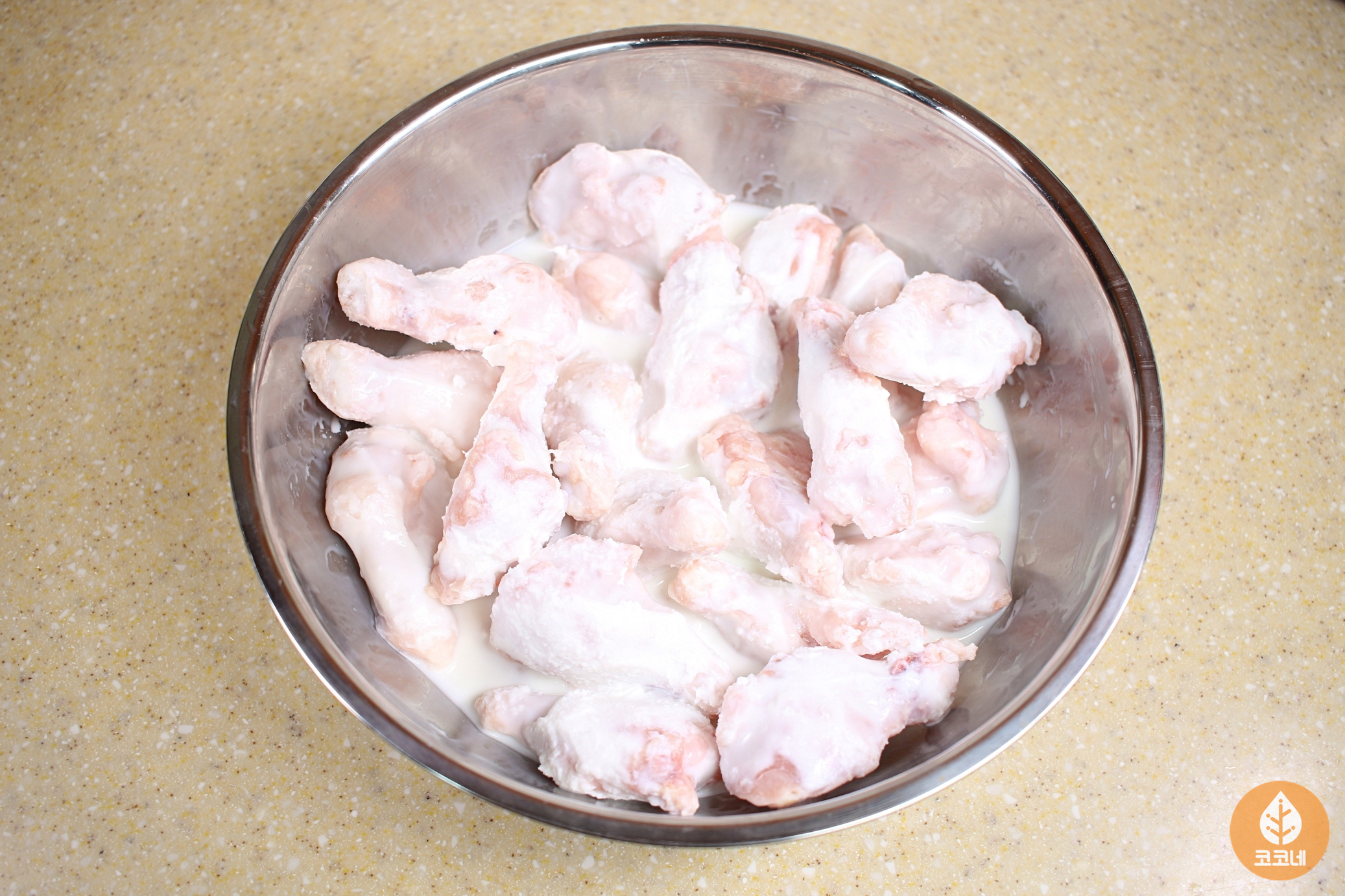 닭봉을 우유에 30분만 담가주세요.