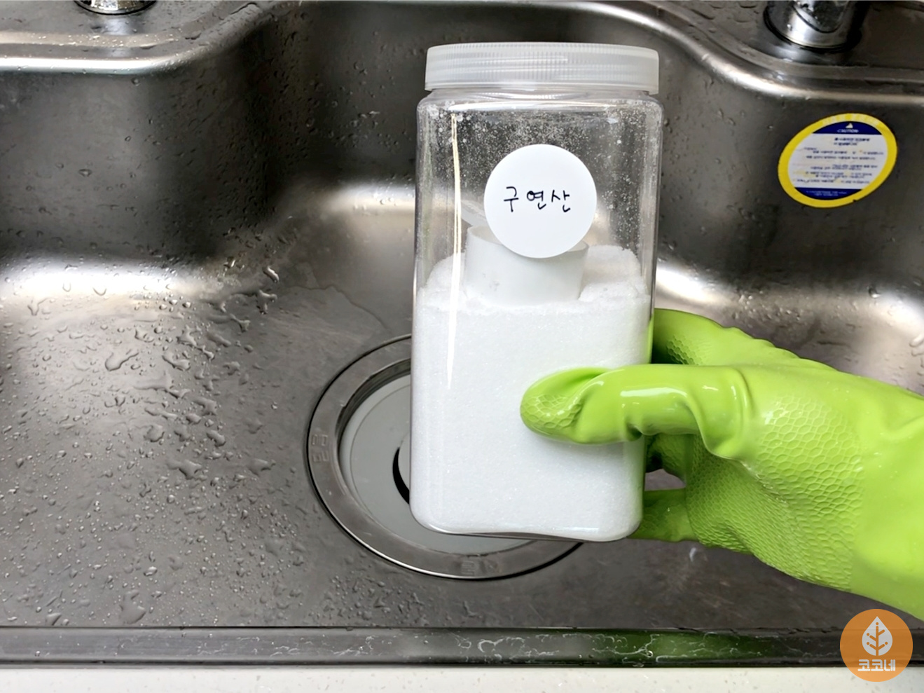 물기를 제거한 싱크대에 구연산수를 골고루 뿌리고