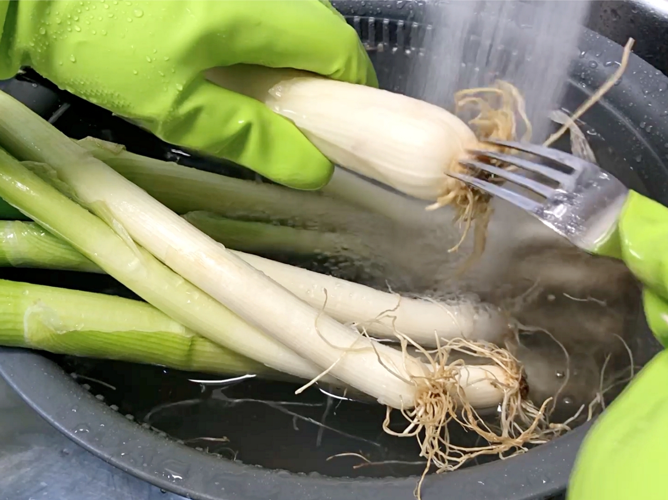 파뿌리를 포크로 살살 긁으면