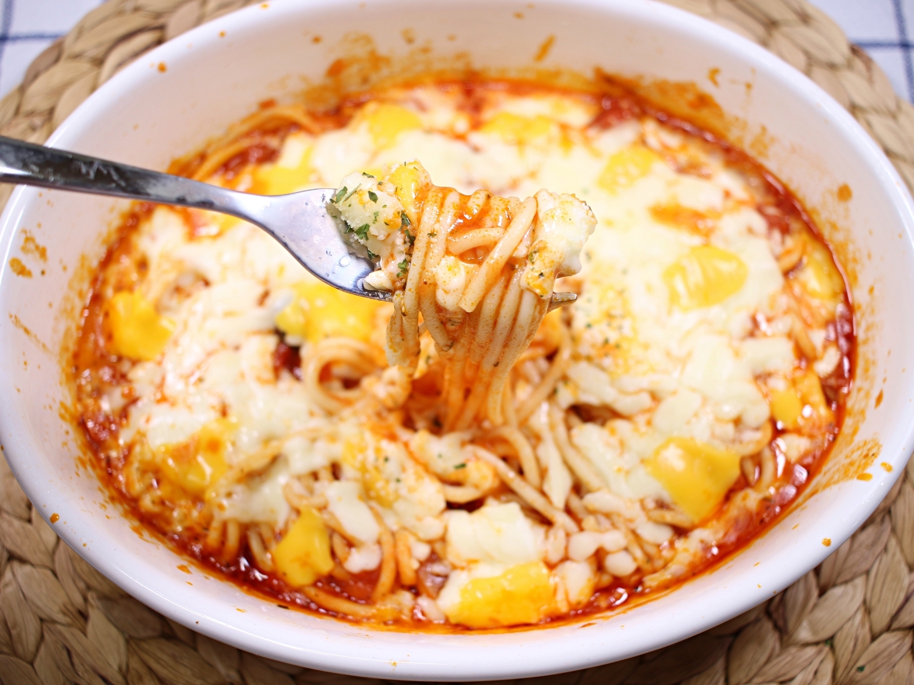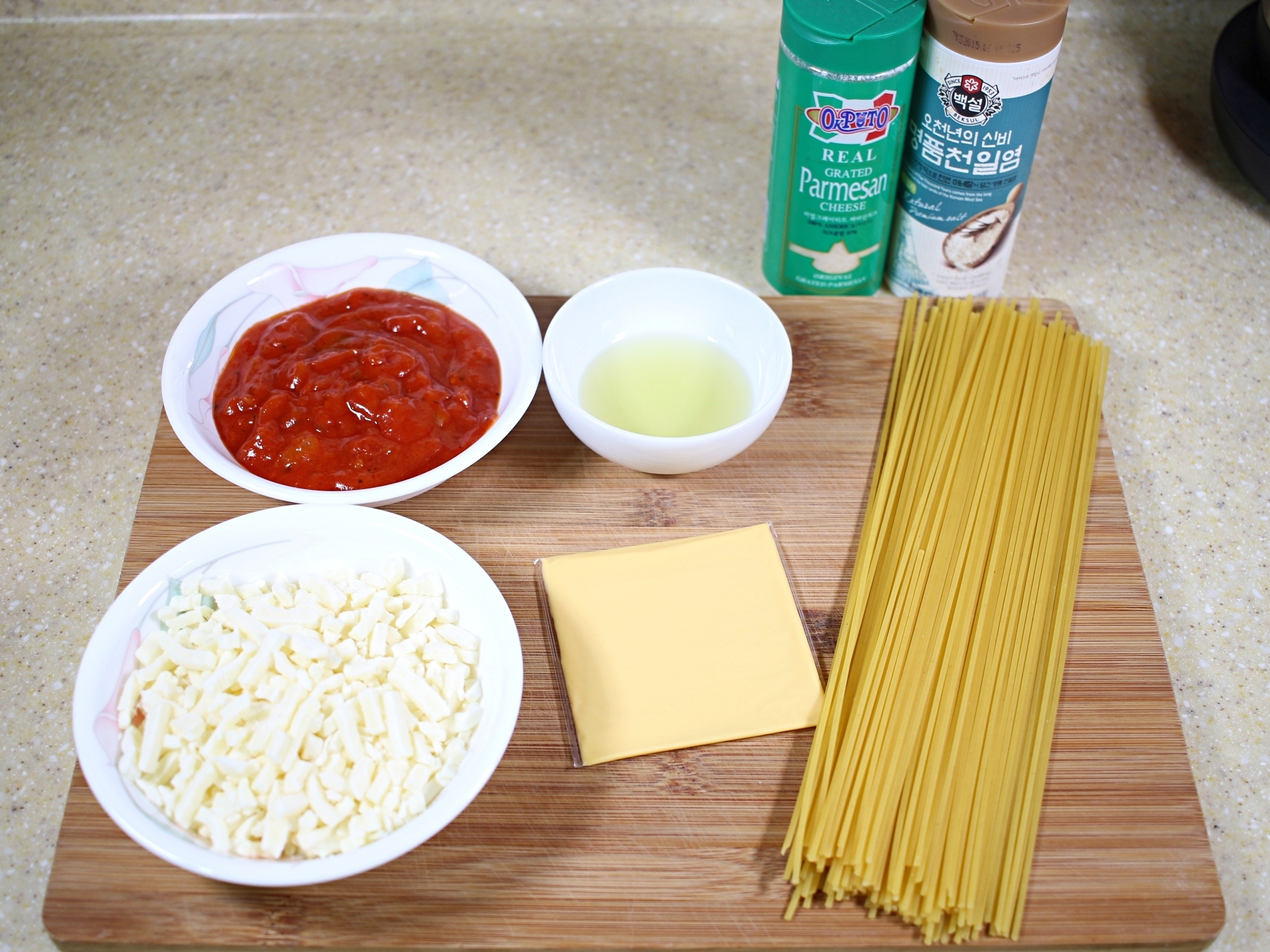 스파게티면과 소스 그리고 치즈만 넣어도 맛있고요.