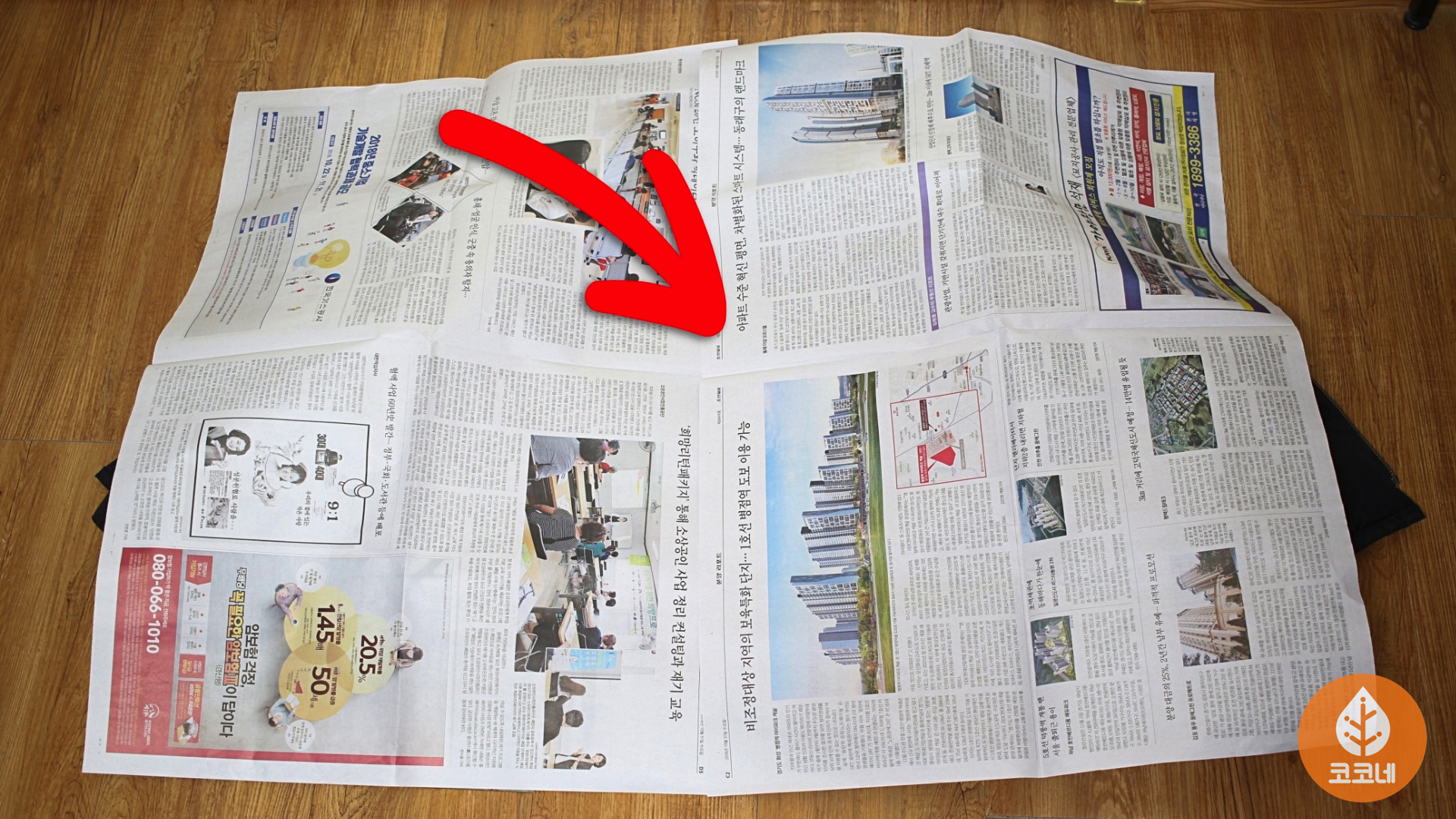 깨끗한 신문지로 패딩 전체를 덮어주세요.