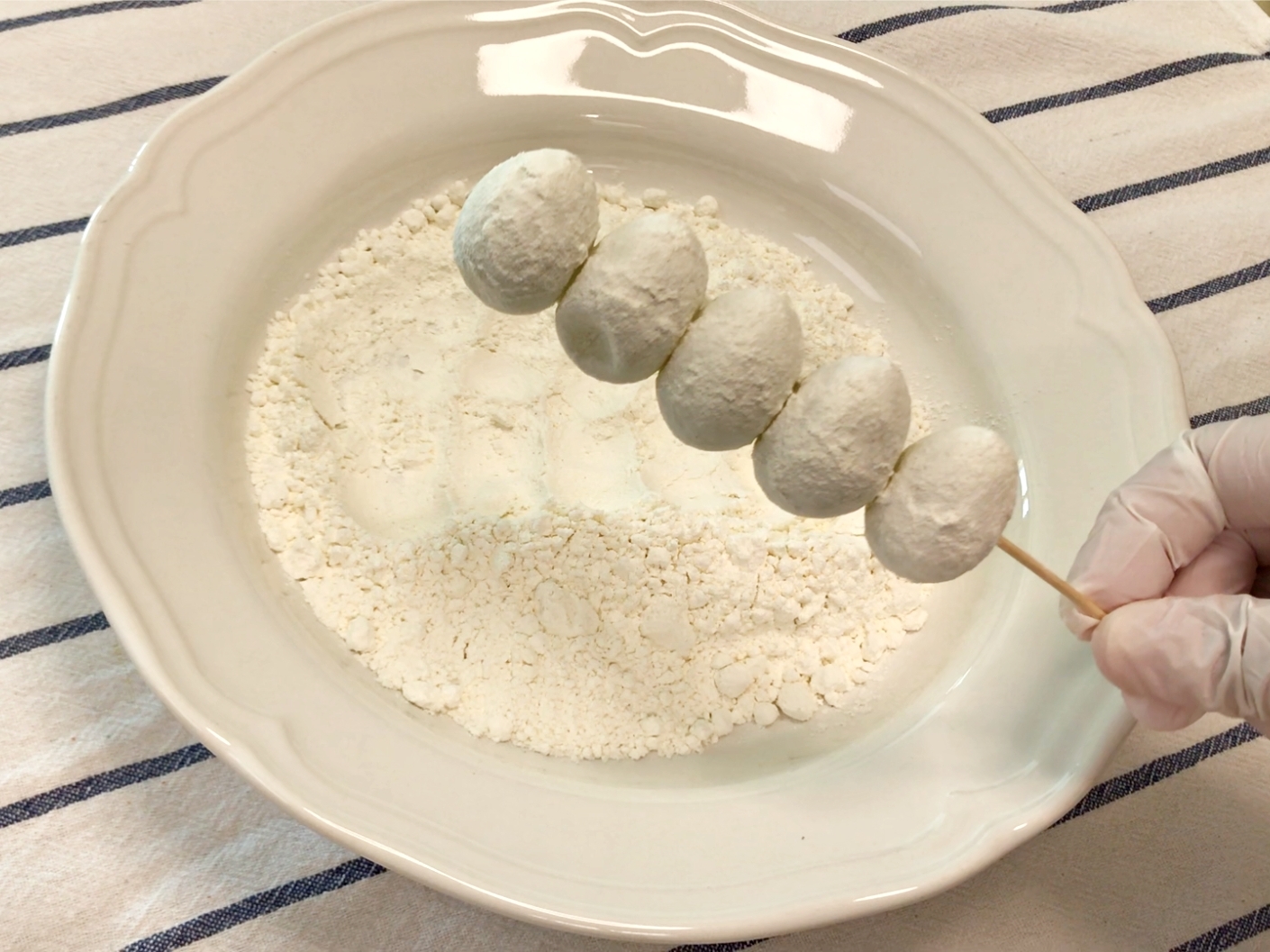 이렇게 꼬치에 끼워서 튀기면