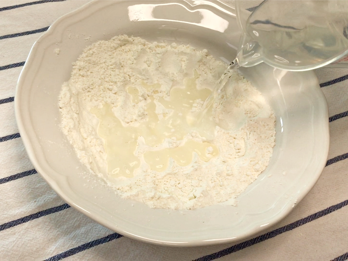 그다음 튀김가루와 물을 1:1로 섞은 튀김반죽을